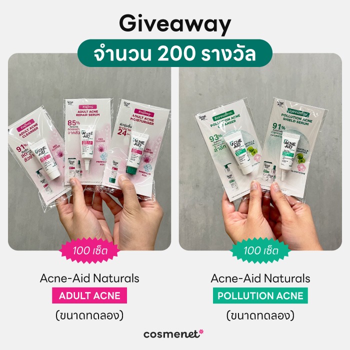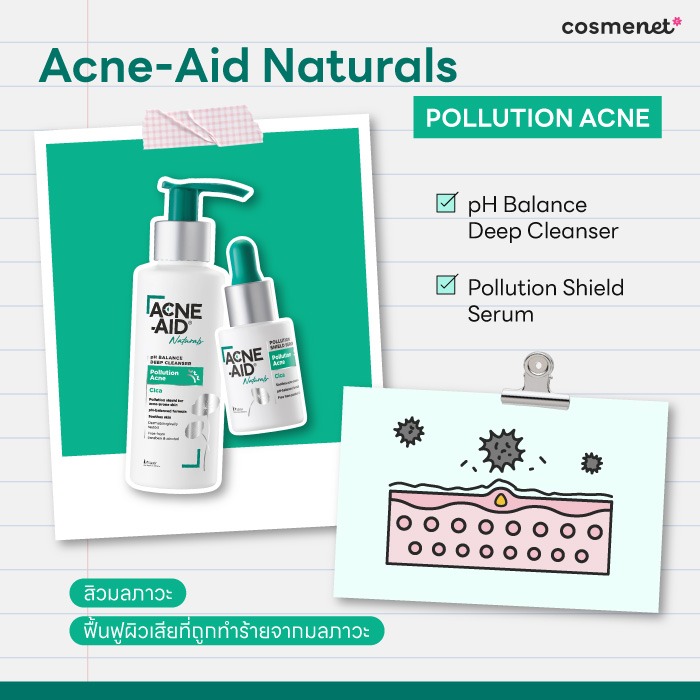- Acne-Aid Naturals Pollution Acne ขนาดทดลอง จำนวน 100 เซ็ต (Cleanser / Serum)