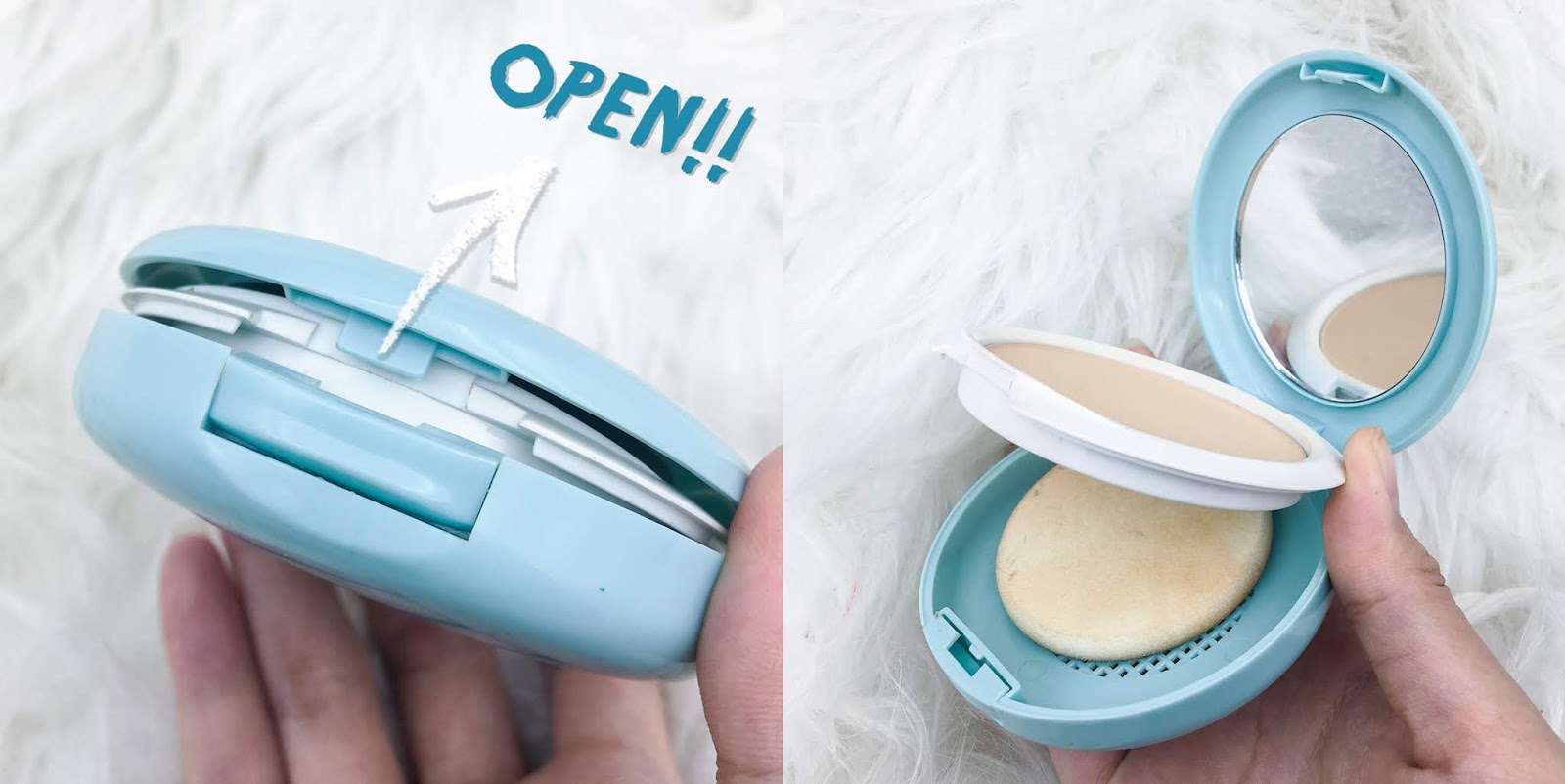 พอเปิดออกมา..จะพบกับตลับแป้ง ที่มีลักษณะเป็นทรงกลม มีขนาดกระทัดรัด