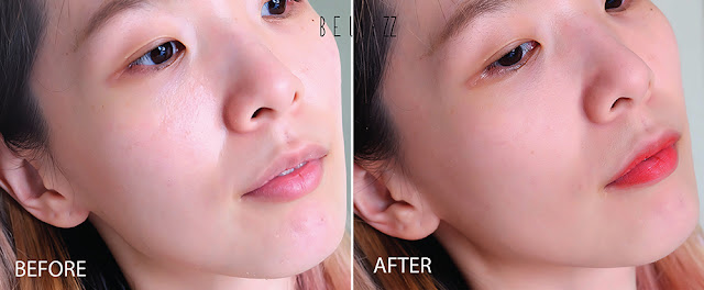ก่อนทาคือทางเบลล์ได้ทาครีมบำรุงกับกันแดดบีโอเรเนื้อเจลใสๆ หน้าเบลล์ก็จะออกเงาๆ หน่อย สีผิวมีไม่สม่ำเสมอในบางจุด (อารมณ์คนเพิ่งตื่นนอนอะเนอะ 555+) หลังจากทาแป้งเสร็จ เบลล์ก็เทลงบนมือแล้วโบกจ้าาาา ไม่มีการใช้แปรงใดๆ อย่างที่บอกคือ ขี้เกียจสุด วันรีบๆ ก็เทลงมือโบกหน้าวน ๆ ไป แล้วเติมคิ้ว ทาปากนิดหน่อย เป็นอันจบ ซึ่งอย่างที่เห็นคือ ผิวค่อนข้างเนียน สีสม่ำเสมอดี ไม่วอก ไม่ลาลาลอย~