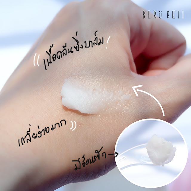 อย่างที่บอกคือตัวนี้เป็นคลีนซิ่งบาล์ม มีสมญานามว่าเป็นเนื้อเชอร์เบท ขาวๆ เนียนๆ เห็นแล้วอยากกินไอติมจริงๆ 555+