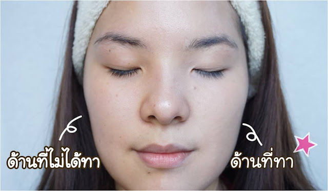 ด้านซ้ายคือด้านที่ทาMISSHA Velvet Finish Cushion แล้ว ส่วนด้านขวาคือด้านที่ยังไม่ทาค่ะ จะเห็นได้ว่าดูสีผิวต่างกันไปเลย อีกด้านดูโทรมศพมาก พอมาดุฝั่งที่ทาแล้วคือ ขาวไบร์ทดูเกาหลีสุด สาบานสิ! ว่าหน้าเดียวกัน 55+