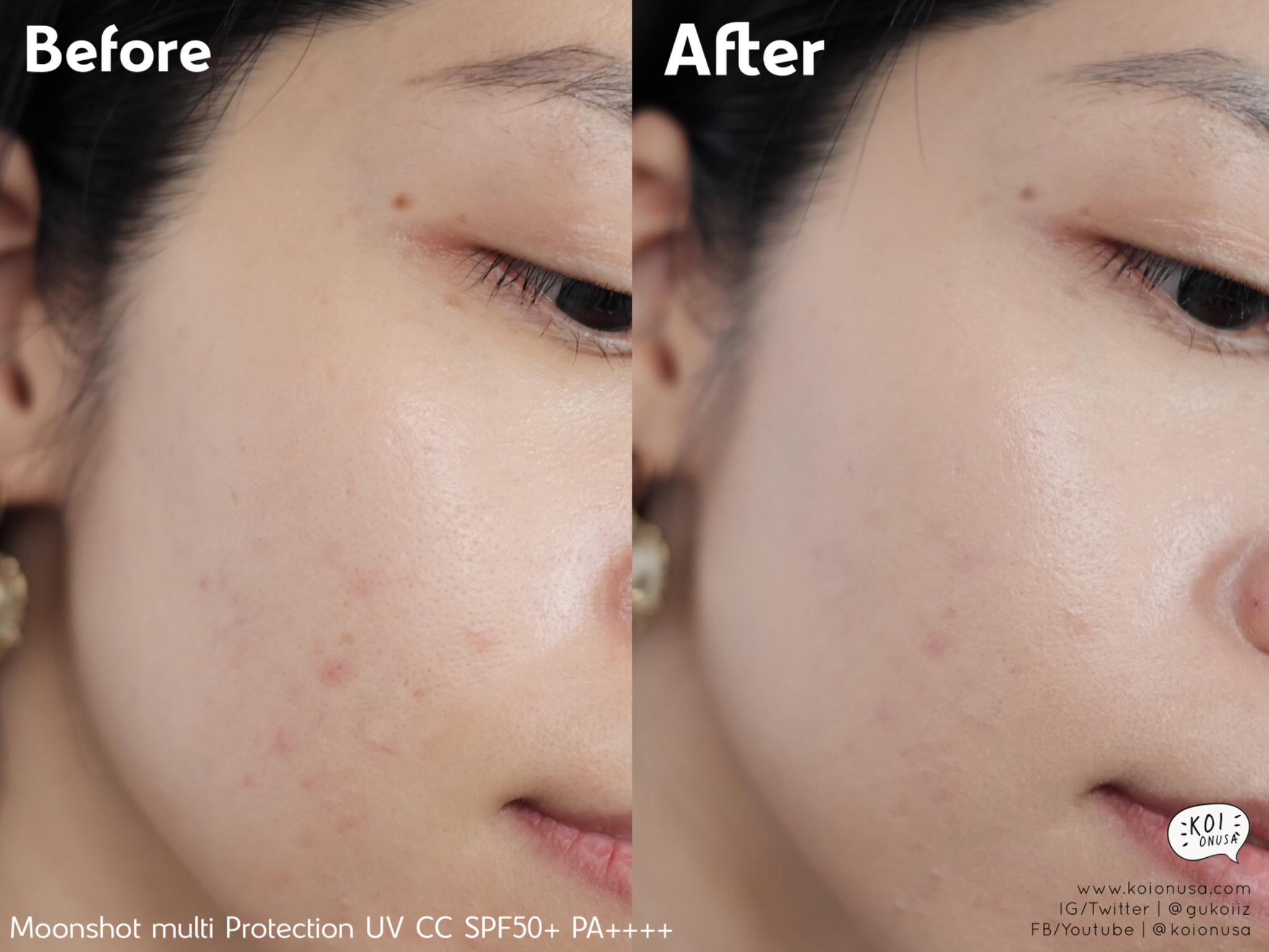 เปรียบเทียบให้ดูชัดๆ ช่วงนี้ก้อยมีรอยสิวหนักหน่อย จะเห็นว่า CC Cream ของเค้าอาจจะไม่ได้ช่วยปกปิดรอยสิวได้ 100% แค่ช่วยให้รอยสิวมันจางลงนิดหน่อย แต่มันช่วยปรับสีผิวให้กระจ่างใสขึ้นนะ และสีของ CC Cream ก็เปลี่ยนเป็นสีที่เข้ากับผิวหน้าก้อยเลย