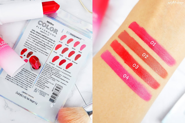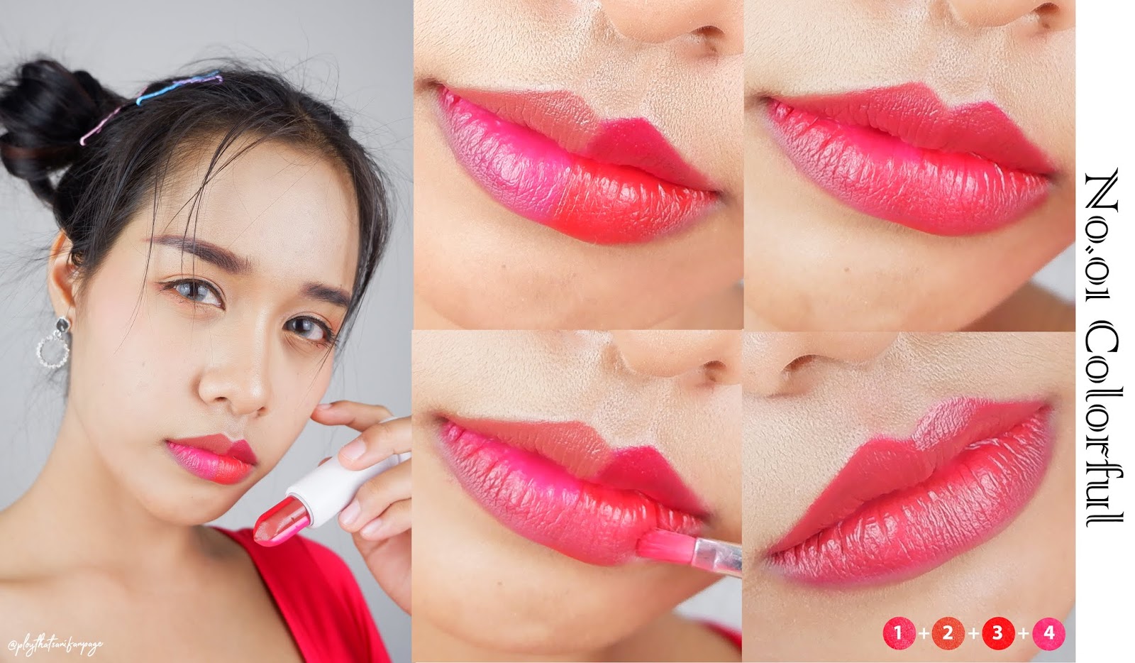 เฉดสีแต่ละสีโดดเด่นไม่แพ้กัน ฟาดฟันกันสุดฤทธิ์ก็ไม่มีใครชนะ! ผสมสีไหนก็ลงตัว เรียวปากดุจนางพญาปังมากจ้าาา พลอยลองผสมทั้ง 4 สีทาลงบนริมฝีปากในอัตราส่วนเท่าๆกัน และจิกสีน้ำตาลแดงเพิ่มอีกนิดก็ออกมาสวยมาก แถมยังช่วยขับผิวให้ดูสว่างออร่าขึ้นด้วยนะเออ