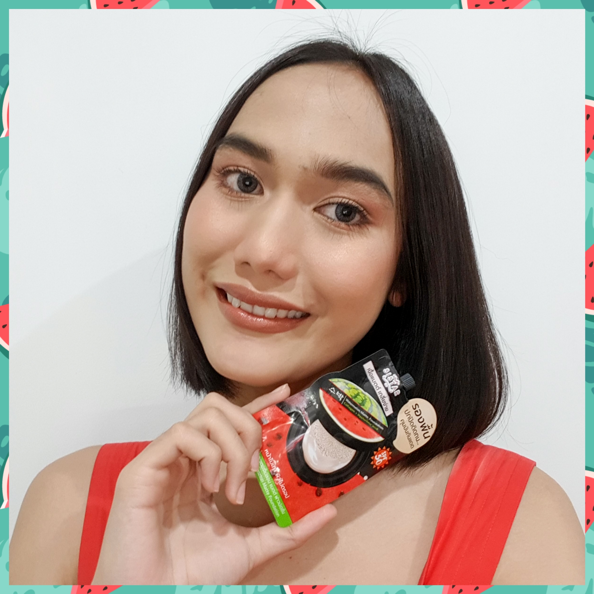 หรือจะเรียกสั้น ๆ ว่า "รองพื้นแตงโมหน้าเป๊ะ" เป็นรองพื้นเนื้อแมตต์ที่มาในรูปแบบครีมซอง พกพาง่าย ความพิเศษคือนอกจากจะเป็นรองพื้นแล้ว ตัวนี้ยังมีสารบำรุงในตัวด้วย มีส่วนผสมของสารสกัดแตงโมเข้มข้น ช่วยบำรุงผิวให้ชุ่มชื้น ดูอิ่มน้ำสุขภาพดี มีส่วนผสมของคอลลาเจนช่วยให้ผิวดูละเอียดเรียบเนียน และยังมี ส่วนผสมของ Hyaluronic Acid ที่ช่วยฟื้นบำรุงผิวแห้งกร้าน ให้ความชุ่มชื้นสบายผิว พร้อมปกป้องผิวจากแสงแดดด้วย SPF 50ค่ะ