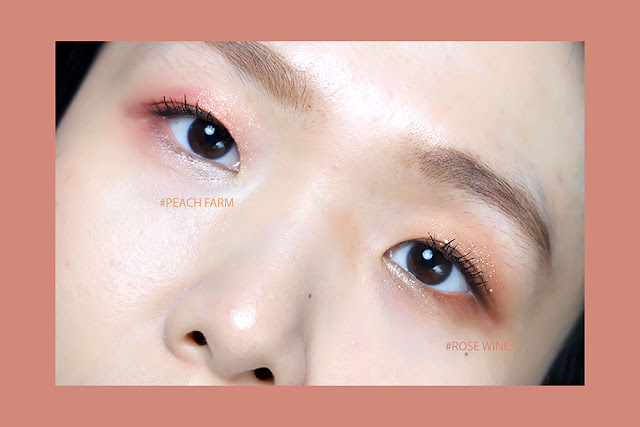 ตัว Peach Farm เค้าก็ใช้เนื้อแบบแมทท์ ชิมเมอร์ และกลิตเตอร์มาเช่นกัน ซึงเนื้้ออายแชโดว์ตัวนี้เค้าจะมีความสีด้านมากกว่าตัว Rosé Wine เล็กน้อยค่ะ แต่สีสวยจริงๆ อันนี้ยอมรับ เชื่อว่าสาวๆ หลายคน คงโดนใจโทนสีนี้กันไม่น้อยเลย