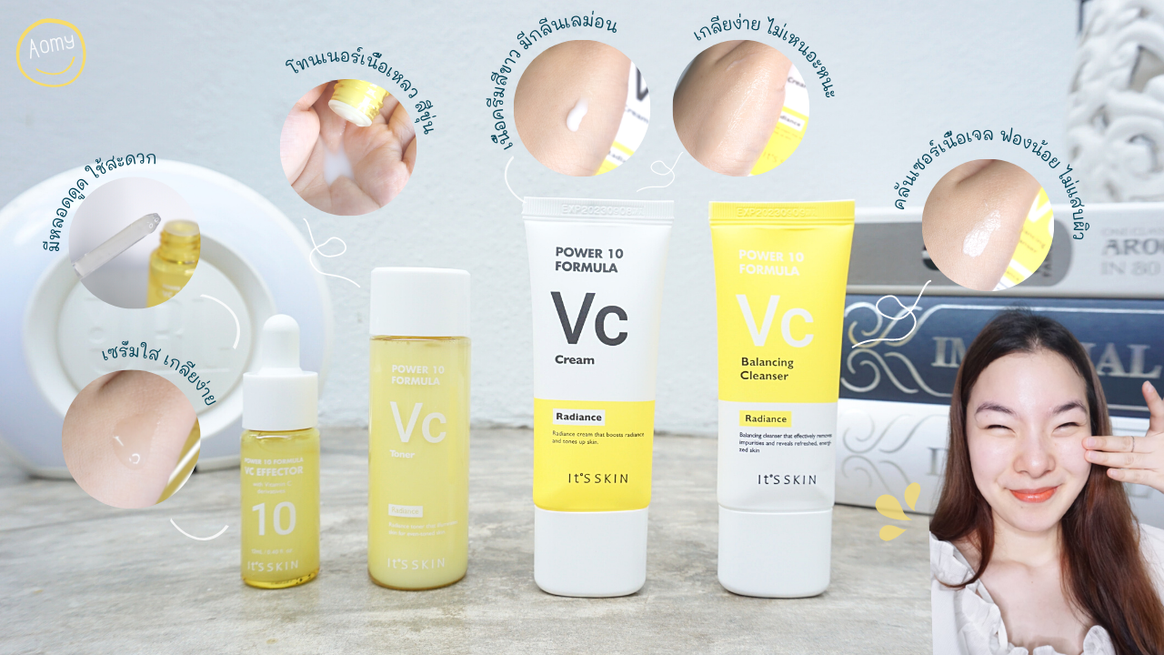 มาต่อกันที่ สูตร It's Skin Power 10 VC หรือ สูตรวิตซี ตัวดังของแบรนด์ ที่แน่นอนว่าช่วย ในเรื่องของการปรับผิวให้แลดูกระจ่างใสขึ้นอย่างเป็นธรรมชาติ ด้วยสารสกัดจาก วิตามิน C กลิ่นของผลิตภัณฑ์เซ็ตนี้ จะมีความซิตรัส ๆ หน่อย ๆ เลม่อน ๆ นิด ๆ ให้ความรู้สึกสดชื่น เฟรชทันทีที่ใช้เลย