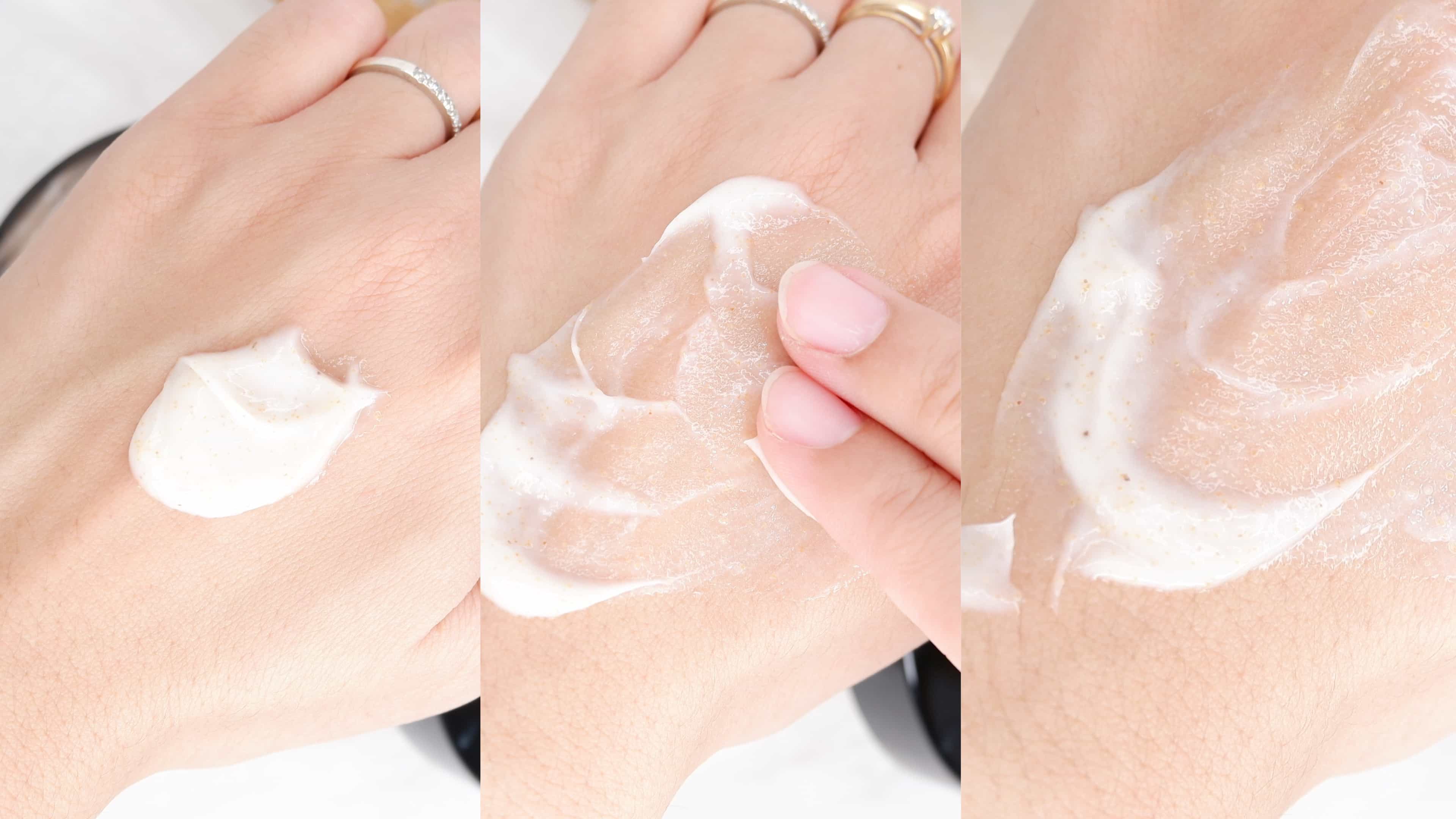 มาต่อที่เนื้อสัมผัสกันบ้างนะคะสาวๆ สำหรับเนื้อสัมผัสของสครับกระปุกนี้ เค้ามาในรูปแบบครีมสครับสีขาว ที่ให้สัมผัสค่อนข้างเข้มข้น และมีเม็ดบีทสีน้ำตาลจากเปลือกวอลนัทผสมอยู่ในเนื้อครีมสครับค่ะสาวๆ และที่สำคัญเลยก็คือเค้ามีกลิ่นหอมอ่อนๆที่ช่วยให้รู้สึกผ่อนคลายได้ดีมากๆอีกด้วยค่า