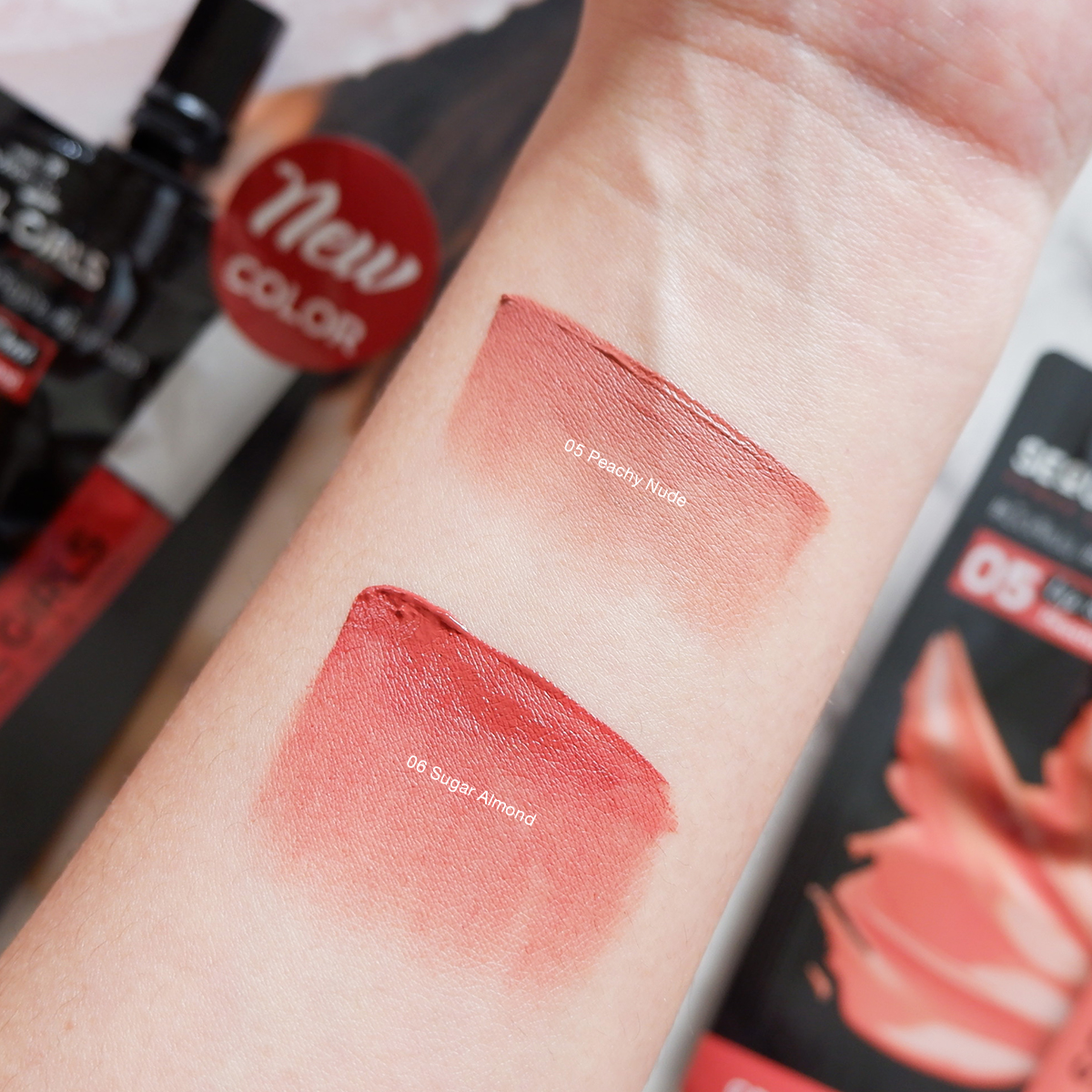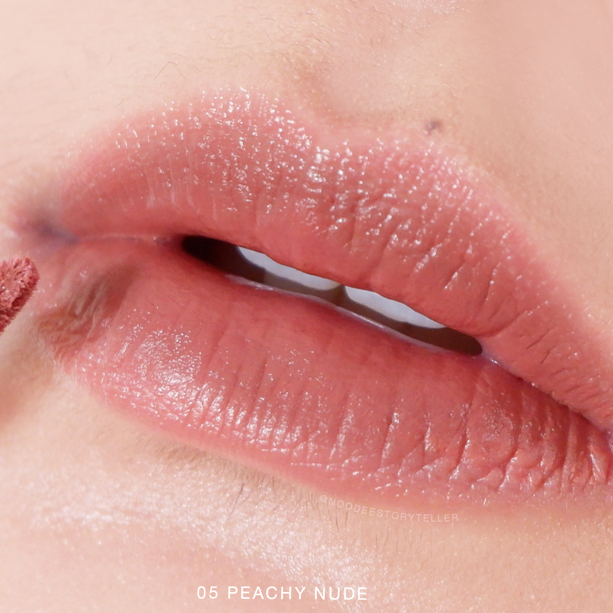 มาที่สีแรก 05 Peachy Nude บอกเลยว่าตอนแรกคิดว่าไม่น่ารอด เพราะสีค่อนข้างไปทางสีชมพูพีชๆ หน่อย ผิวสองสีอย่างเราจะรอดไหมนะ แต่แบบพอทาไปแล้วสีดีมากกกกกกก ก.ไก่ ล้านตัวเลย คือสีนางผู้ดี สีสุภาพมากเลย