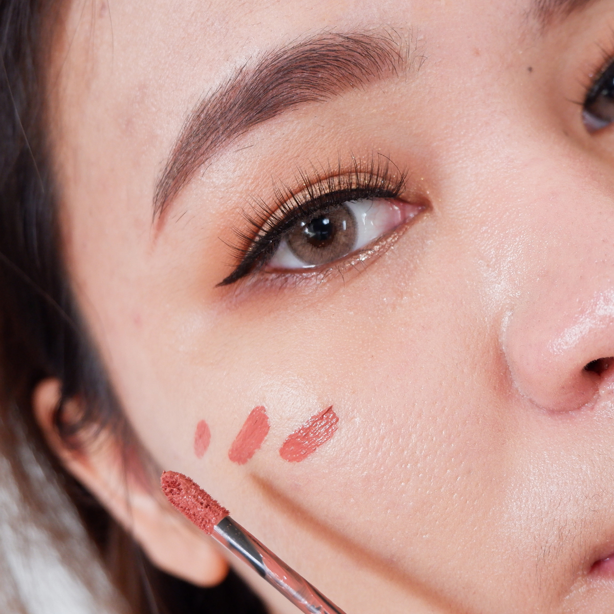 คือสีนี้สีค่อนข้างชัดมาก ใครผิวขาวก็ tap tap แบบระวังหน่อย เพราะสีเขาชัดมาก ส่วนใครผิวสองสีและมีโหนกแก้มสูงแบบเรา แนะนำให้ทาบริเวณโหนกแก้มจนถึงข้างแก้ม ส่วนหน้าแก้ม tap tap เบาๆ พอ หรือใครสายเกาอยากจะ tap tap เบาๆบริเวณหน้าแก้มก็ดูน่ารักดี แล้วคือสีนี้ขึ้นกับสีผิวสองสีมากเราว่า ใครชอบสีโทนประมาณนี้จัดเลยจ้าา