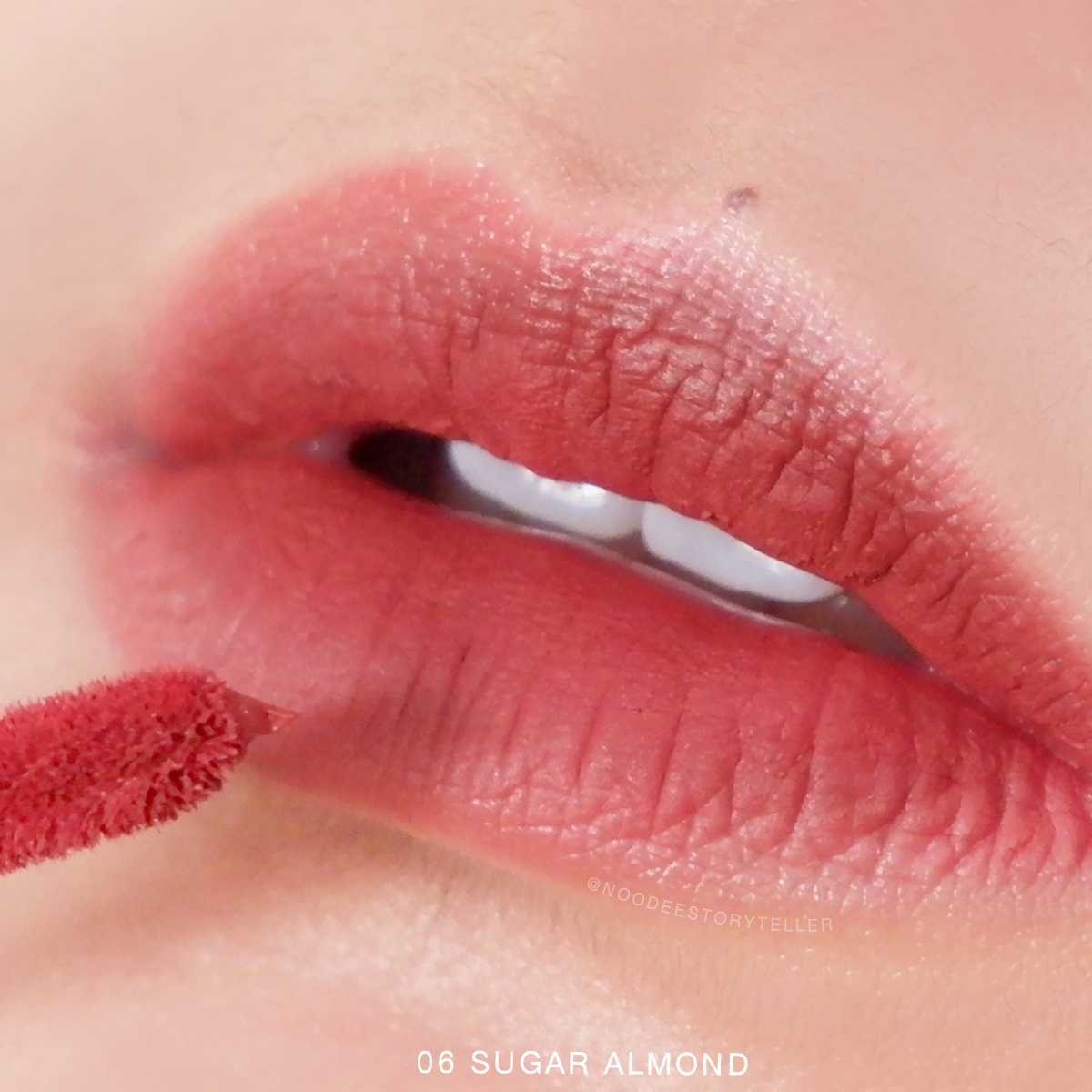 สีต่อมาใครที่ชอบทาลิปโทนส้มๆ แดงๆ ต้องชอบแน่ๆ สีนี้เป็นสี 06 Sugar Almond คือเป็นแดงอมส้มที่สวยมากแม่ มันสวยมันสวยยยย คือมันไม่ได้เข้มมาก แต่มันทาแล้วปากเราดูแดงระเรื่อๆอะ คือสีนี้สวยจริงๆ ทาแก้ม ทาปากสีก็ชัด สวยมากเลย