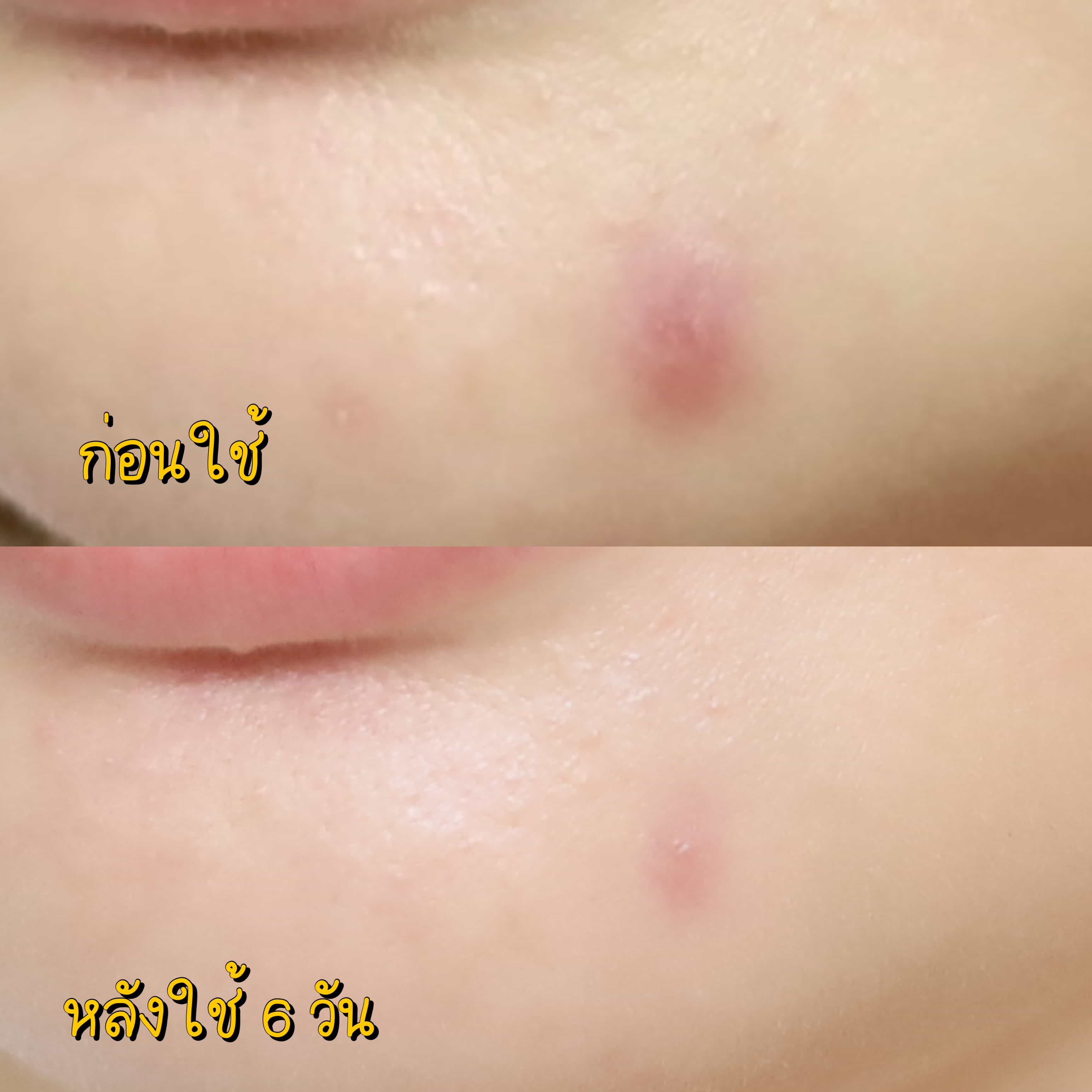 รอยสิวจางลงค่ะ! คืออาจจะไม่ได้จางลง 100% แต่ถ้าเทียบกับระยะเวลาเพียงแค่ 6 วัน