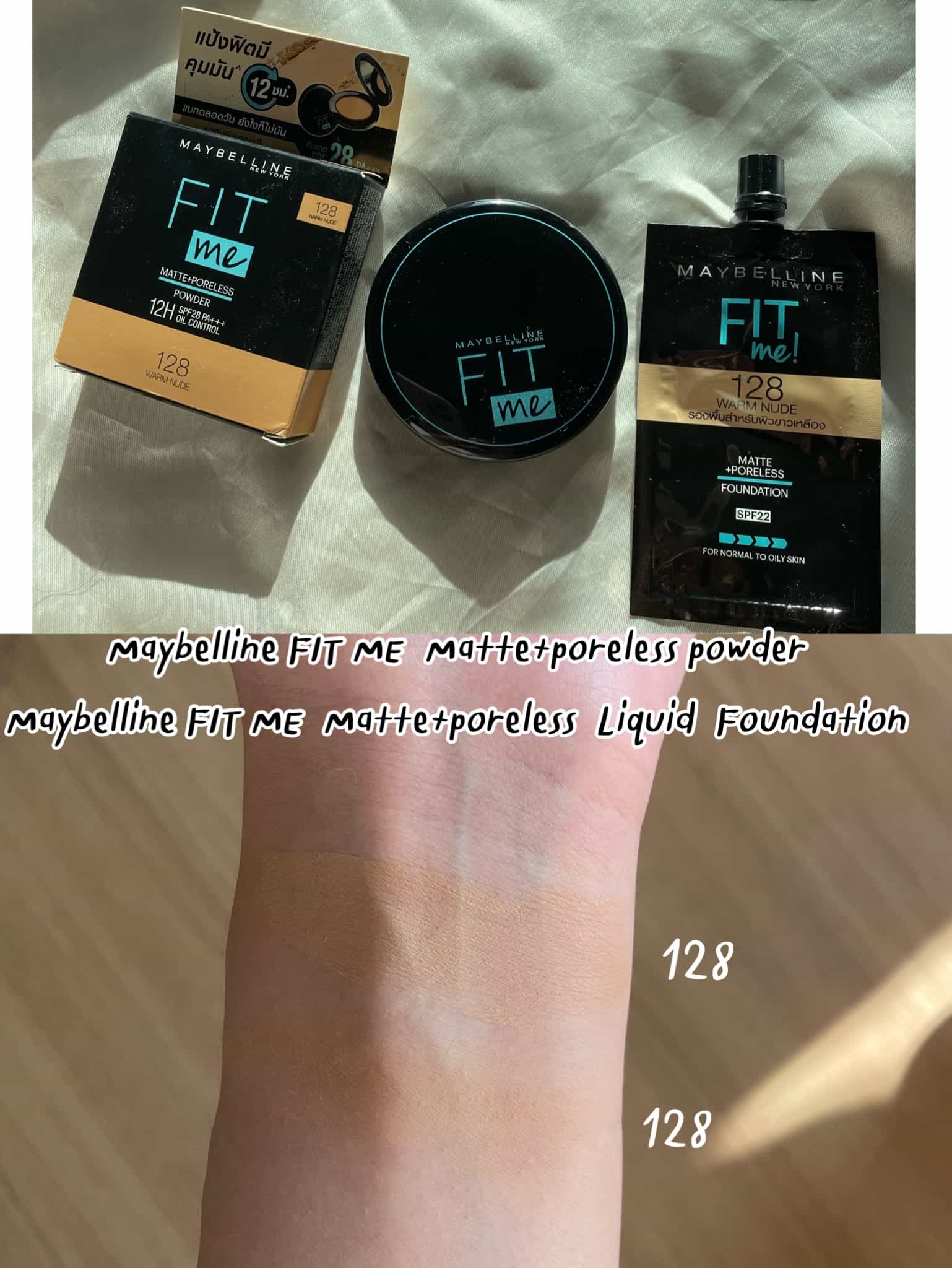ตัวที่ 3 Maybelline FIT ME Matte poreless powder และ Maybelline FIT ME Matte poreless Liquid Foundation รองพื้นเป็นเนื้อเหลวบางเบา เกลี่ยง่าย เป็นรองพื้นที่ให้ ลุคแบบแมท ดูสวย เป็นธรรมชาติ ช่วยปกปิดรูขุมขน อำพรางให้ผิวดูเนียน คุมมันได้ดี สามารถกันน้ำ กันเหงื่อ มีความติดทนผิว มี SPF 22 ใช้คู่กับตัวแป้งเนื้อบางเบา ทำให้ผิวสวยอย่างเป็นธรรมชาติ มี SPF28 PA ให้ผิวแมท ทำให้ตัวรองพื้นติดทนยิ่งขึ้น ใช้คู่กันคือได้ผิวที่ดูเนียนกริบมาก