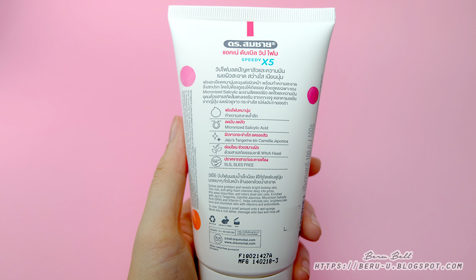 ด้านหลังหลอดวิปโฟมของเค้าจะบอกถึงส่วนผสมต่างๆ อย่างละเอียด ซึ่งนอกจากนั้นแล้วเบลล์อยากจะบอกว่าคนที่มีผิวแพ้ง่ายเนี่ยก็สามารถใช้ได้ด้วยนะ เพราะเค้าไม่มีส่วนผสมของแอลกอฮอล์ใดๆ ปราศจากสารระคายเคืองใดๆ แถมยังช่วยทำให้ผิวของเรานุ่ม ชุ่มชื้น แข็งแรงด้วยจ้า