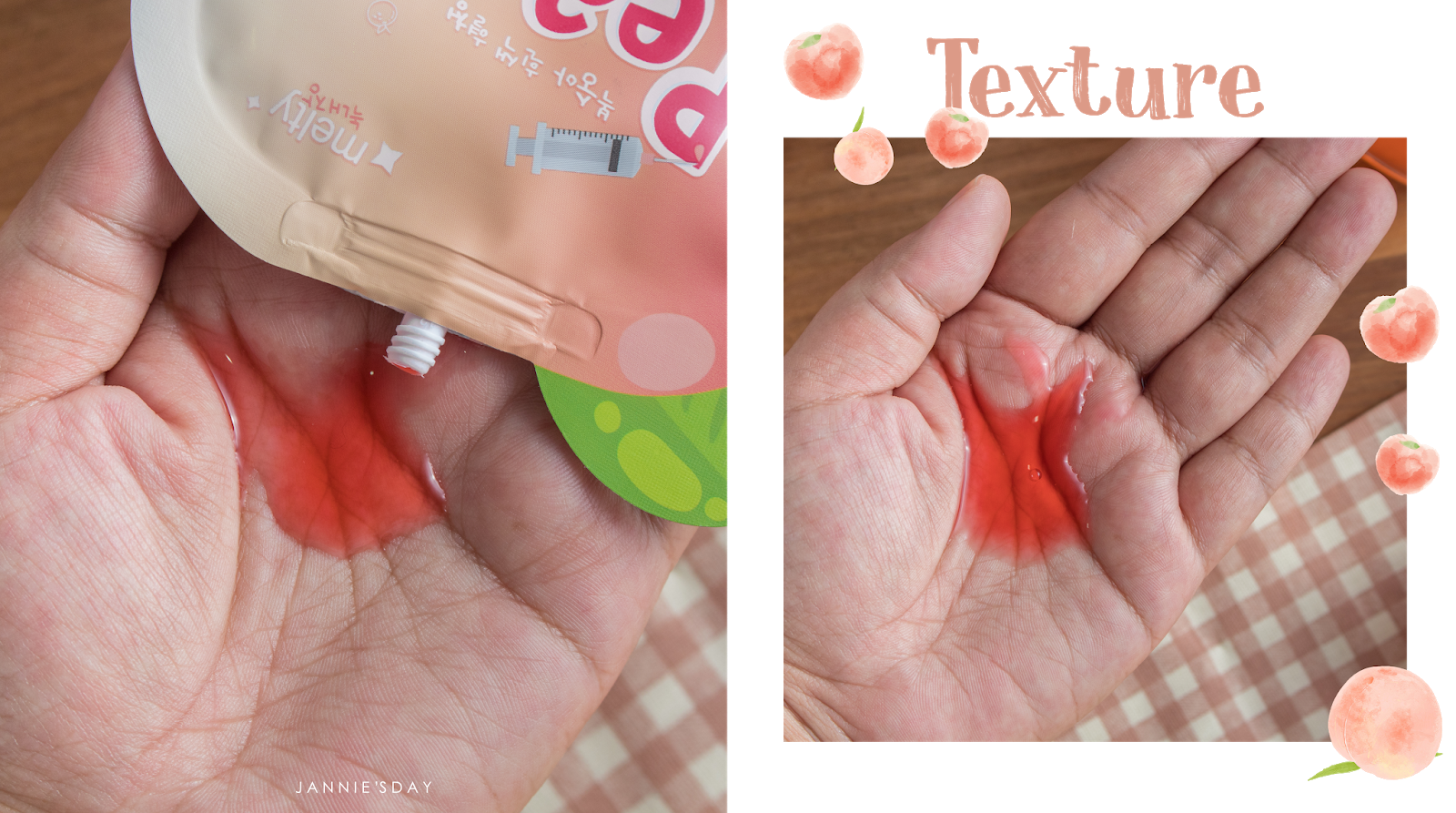 หลังจากผสมกับโลชั่นที่แจนใช้ประจำ คือตัวโลชั่นจะมีกลิ่นหอมของลูกพีชขึ้นมาเลยเกลี่ยง่าย ไม่เหนอะหนะผิว ทาแล้วฟินมากจริงๆ ผิวหลังทาแล้ว สังเกตุว่าผิวจะชุ่มชื้น แถมนุ่มขึ้นมาก