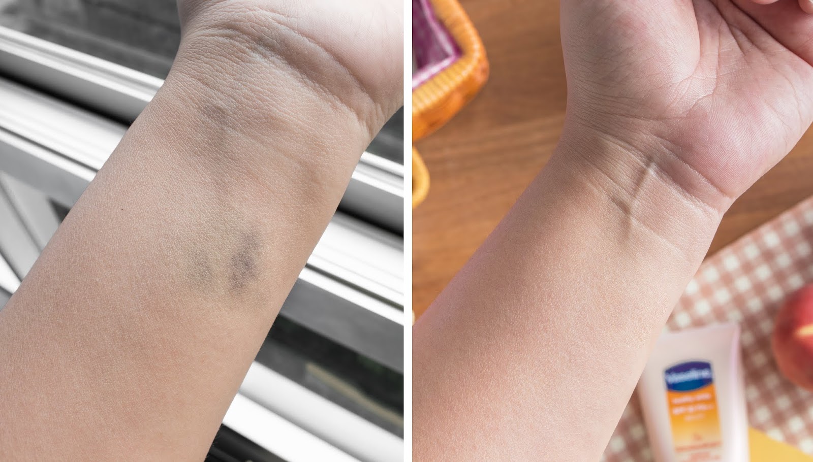 สังเกตุได้เลยคือรอยช้ำจากแขนที่ชนขอบโต๊ะ คือจางไวมากจริงๆ คือปลื้มมากก