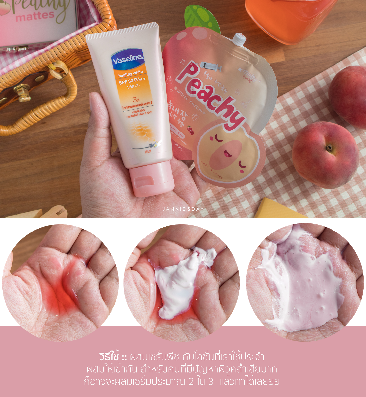 ซึ่งตัวนี้เค้าจะเป็นเซรั่มพีชเข้มข้น ไว้ผสมกับครีมบำรุงผิวของเราค่ะ