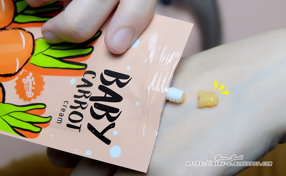 เนื้อครีมเบบี้แครอทของเค้าจะมีลักษณะกึ่งเจล เนื้อเนียนเข้มข้น ทว่าซึมลงสู่ผิวได้ดี