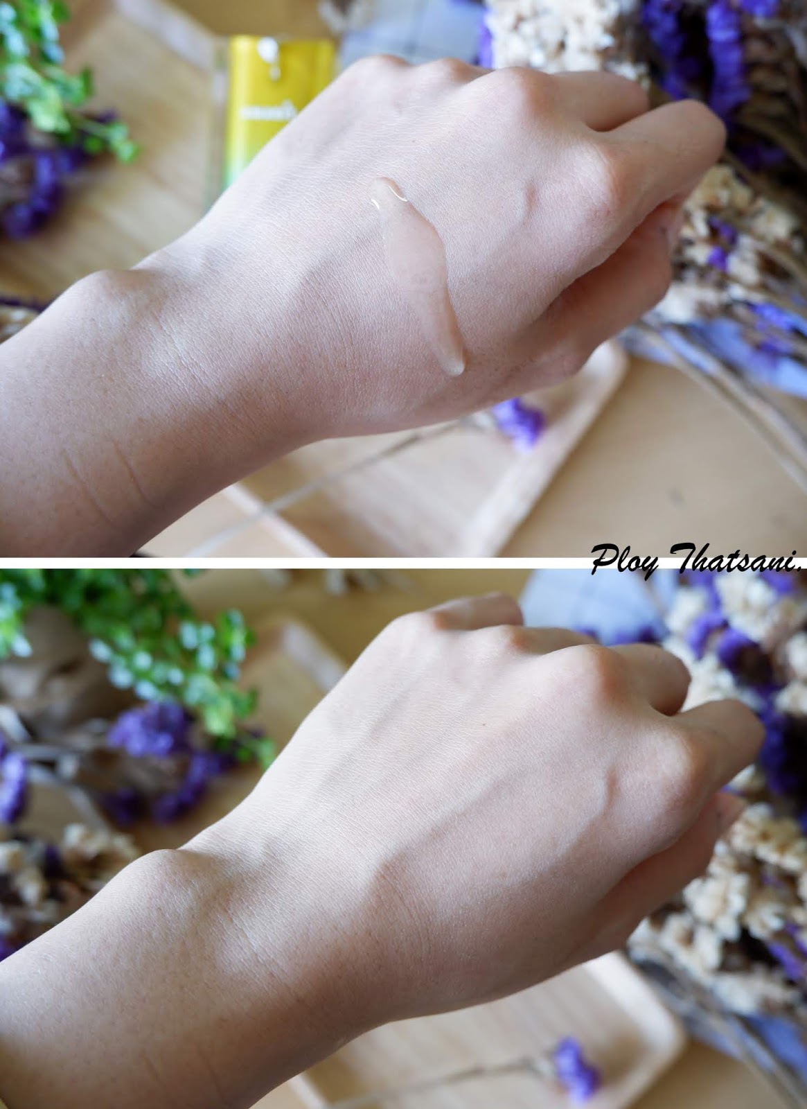 เนื้อเซรั่มไร้สี แต่มีกลิ่นหอมผลไม้อ่อนๆ Texture ของเซรั่มนั้นจะมีความเหลว ไม่เหนียวหนืดมาก และมีความบางเบา ทำให้เมื่อทาลงบนผิวหนังแล้วจะซึมไวมาก ไม่ทิ้งความมันหรือเหนอะหนะไว้เลยค่ะ