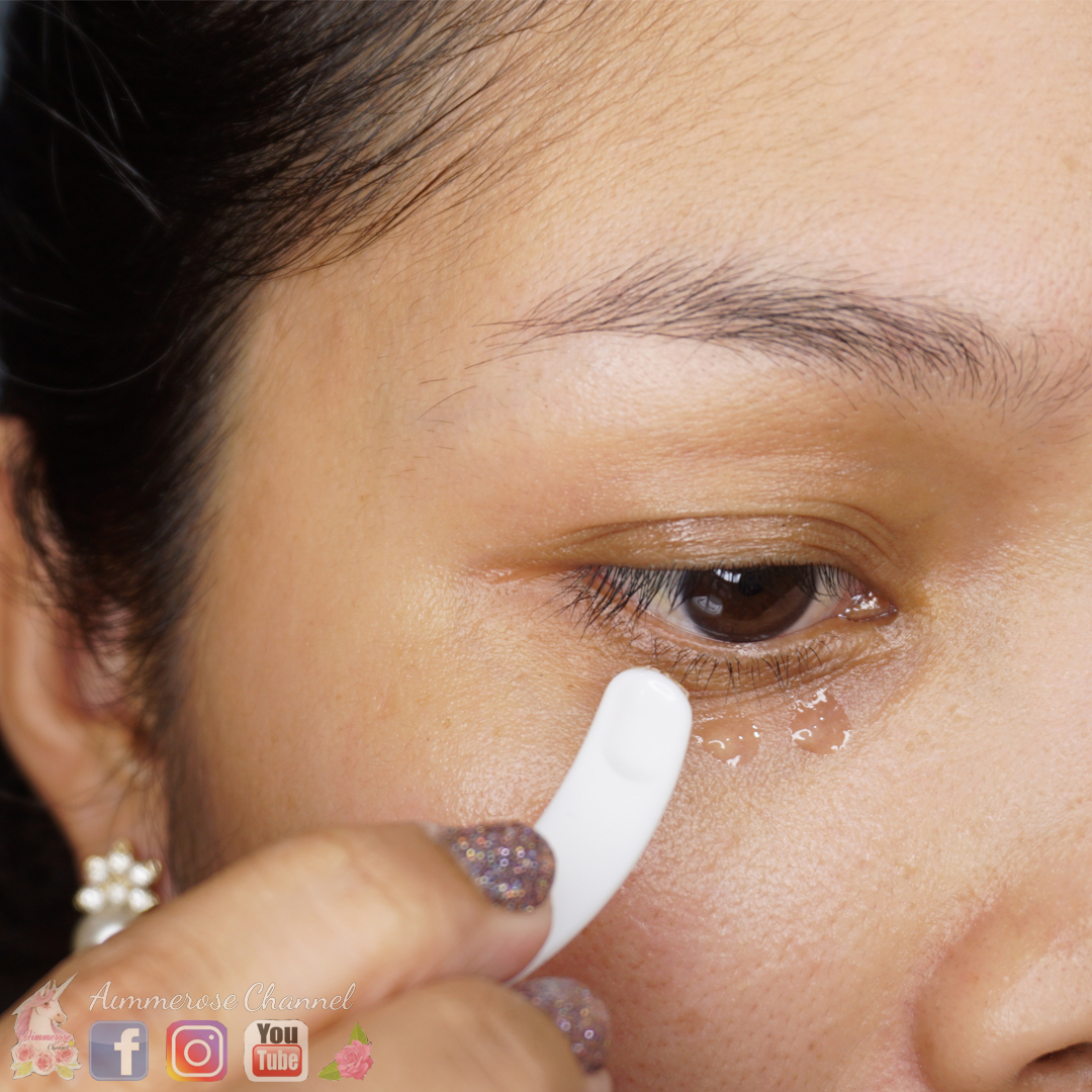 จากนั้นก็แต้มลงไปที่บริเวณใต้ตาเป็นจำนวน 8 จุด จากหัวตาไปจนถึงหางตาเลยนะคะ