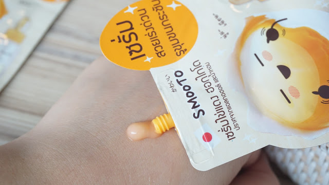 แต่ที่ผิดคาดคือ กลิ่นขอเซรั่มที่หอมหวานมากกกกก ออกขนมๆ หน่อยๆ ตอนแรกนึกว่าจะคาวไข่ซะอีก 5555+เนื้อเซรั่มเกลี่ยง่าย พอเกลี่ยแล้วก็ไม่ได้ทิ้งความเหลือง หรือเป็นคราบที่ผิวเอาไว้นะ