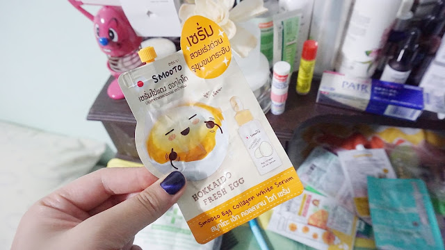 ซึ่งวันนี้ออมก็จะมารีวิวสกินแคร์แบบซอง ให้เพื่อนๆได้ดูกันอีกแล้วค่ะ 555+ เห็นช่วงนี้กระแสไข่เค็มมาแรงมากๆไม่ว่าจะหันไปทางไหนก็มีแต่ไข่เค็มไข่เค็มไข่เค็มเต็มไปหมด เพราะเห็นสกินแคร์ที่เป็นรูปไข่แว๊บ!! แรกก็นึกว่าเฮ้ย!! สกินแคร์ไข่เค็ม!! เอาแต่ไม่ใช่มันแค่ไข่แดงเฉยๆนี่หว่า มันก็คือเจ้า Smooto Egg Collagen White Serum ตัวนี้เลยค่ะ