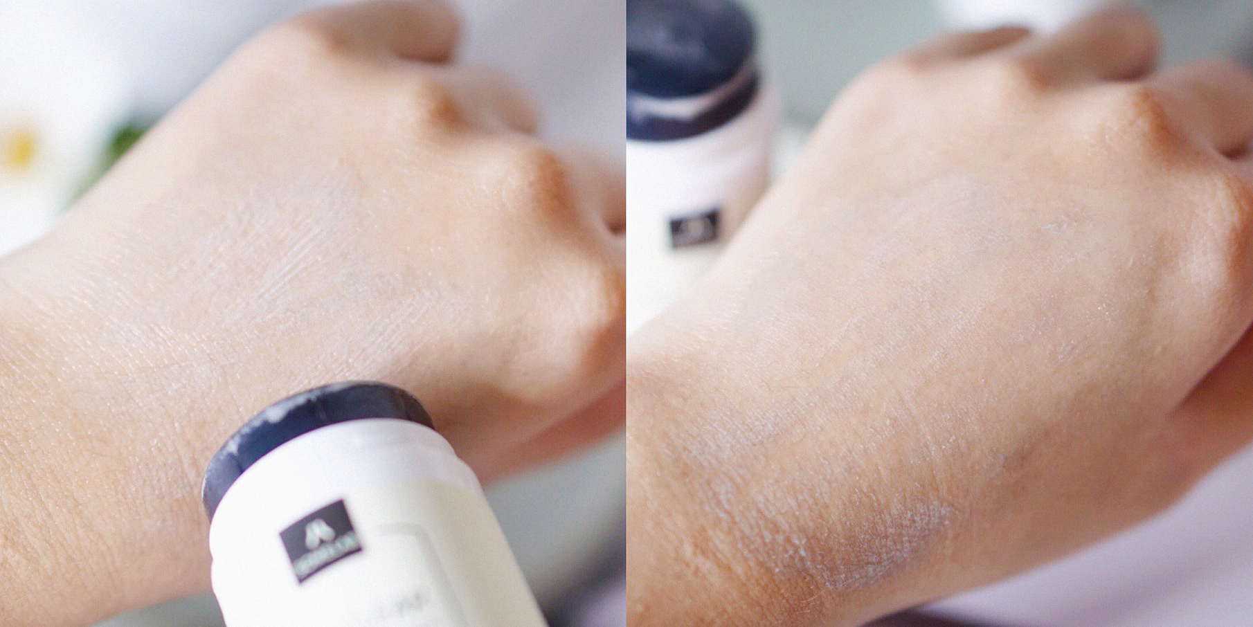 ถัดมาเรามาดูเนื้อมาส์กยางลบของเค้ากันบ้าง ให้ใช้ตอนที่หน้าเปียกนะคะ คือล้างหน้าให้สะอาดก่อน แล้วค่อยลงมาส์กตาม เราจะลองลงที่หลังมือให้ดูก่อน เดี๋ยวจะลงที่หน้าให้ดูอีกที แม้เค้าจะเป็นมาส์กยางลบ แต่พอเราปาดลงไปที่ผิว ไม่ได้รู้สึกระคายเคือง ฝืดหรือใช้ลำบากนะ เนื้อมาส์กลื่นมากๆ ปาดง่าย จะเป็นสีออกเทาๆ แบบนี้เลย