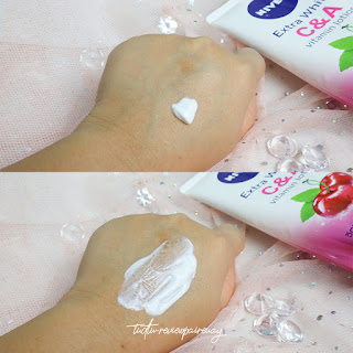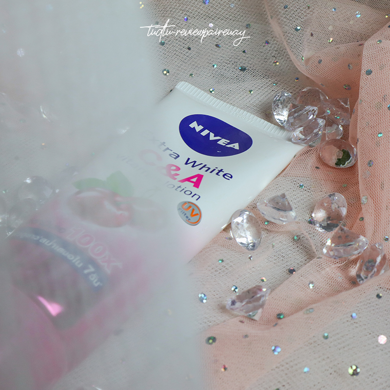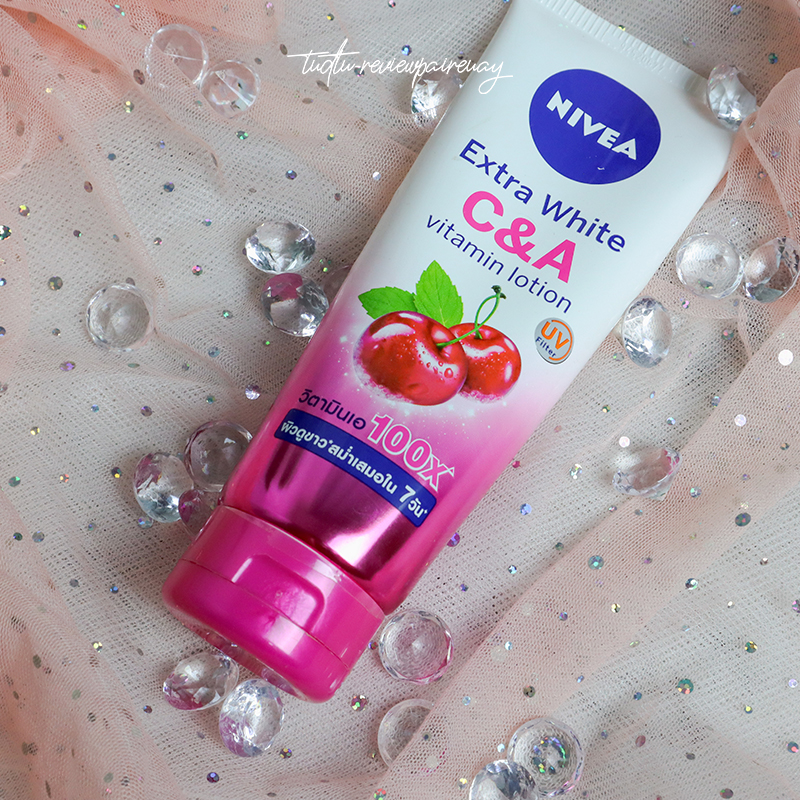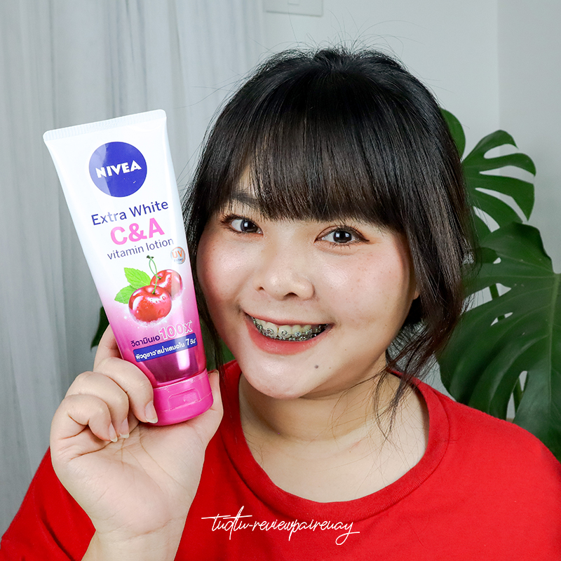 Nivea extra white C&A vitamin lotion จากเชอร์รี่มินท์เป็นสูตรเย็นค่ะ เหมาะกับอากาศบ้านเราพอทาที่ผิวแล้ว ได้ฟิวของความเย็นมินท์ ๆ หอมลักษณะเฉพาะของนีเวีย ซึ่งตัวนี้ยังมีคุณสมบัติของวิตามินโลชั่นที่อัดแน่นเหมือนเดิมค่ะ เพิ่มเต็มคือวิตามินเอ 100 เท่าเป็นครั้งแรกของวิตามินเอมาอยู่ในรูปแบบของโลชั่นเลยค่ะ และยังมีวิตามินซีค่ะ ที่ช่วยบูสผิวให้ขาวกระจ่างใสขึ้นจ้า และที่สูตรนี้เพิ่มมาคือ UV filter จะช่วยกรองแสงและป้องกันรังสี uva-uvb ค่ะ