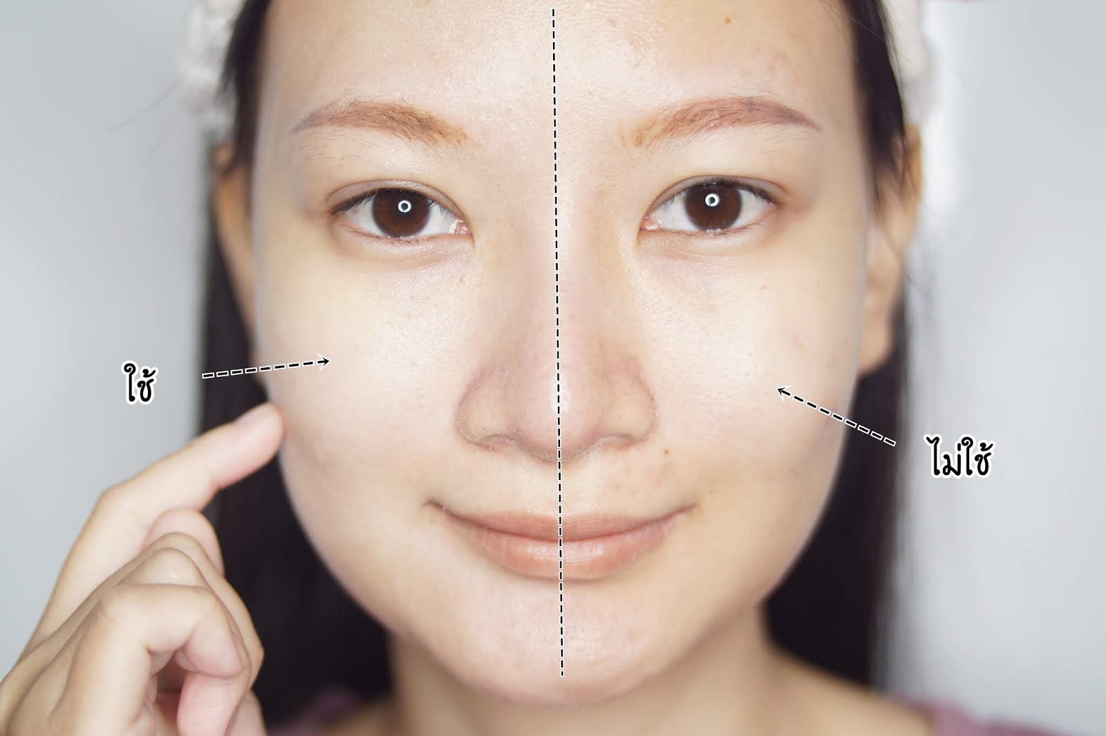 ทดลองใช้ครึ่งหน้า จะสังเกตได้ว่าข้างที่ใช้จะมีความขาวกระจ่างใสขึ้นมาระดับนึงเลยค่ะ