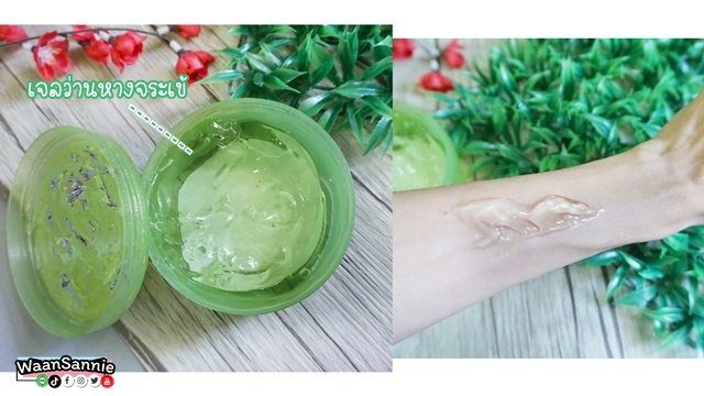 เพราะเจลว่านหางจระเข้จะมีฤทธิ์เย็น ช่วยปลอบประโลมผิวที่สูญเสียน้ำ ให้ผิวชุ่มชื่น