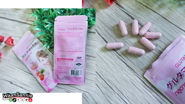 GlutaMax จะเป็นกลูต้าที่มาในรูปแบบแคปซูลสีชมพู ซึ่งใน 1 แคปซูลจะประกอบด้วย