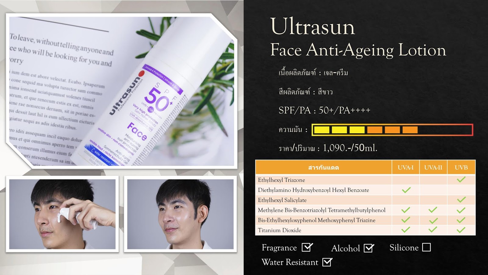 และแล้วก็เดินทางมาถึงกันแดดตัวสุดท้ายของบทความนี้นั่นคือ Ultrasun Face Anti-Ageing Lotion SPF50+ PA++++ ต้องบอกว่าเป็นกันแดดที่อยู่นอกสายตาเราตัวนึงเลยหละ แต่ล่าสุดเราได้รับการป้ายยาจากพี่ Blogger ท่านนึงว่ากันแดดได้ดีมากๆ พอได้ยินแบบนี้ก็หูผึ่งซิงานนี้ สุดท้ายก็ได้มามาจนได้