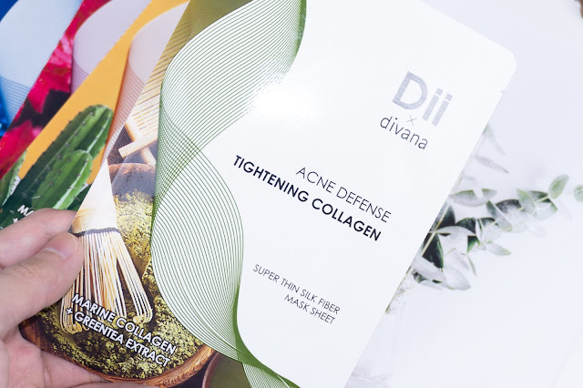 Dii SUPER THIN SILK FIBER MASK SHEET สูตร ACNE DEFENSE TIGHTENING COLLAGEN |