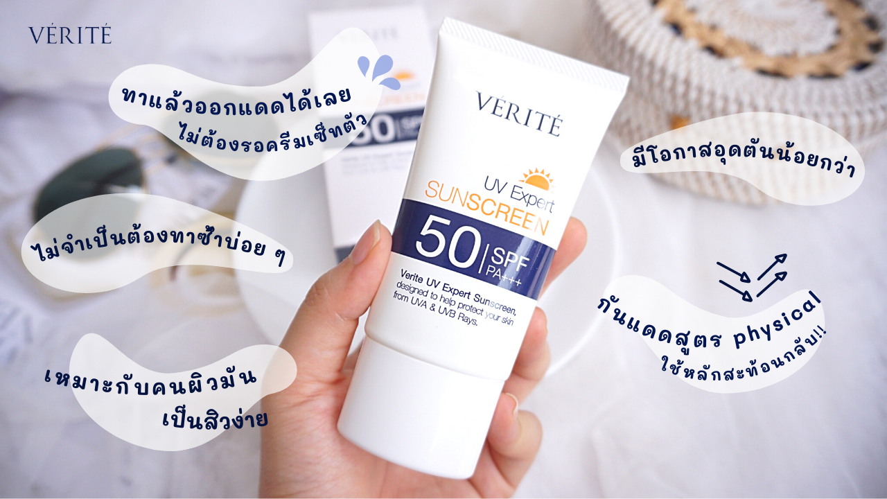 ซึ่งกันแดดของ Verite ตัวนี้เป็น กันแดดแบบ Physical ที่กำลังฮิตมาก ๆ เพราะเป็นการช่วยป้องกันรังสี UV จากแสงแดด โดยวิธีการ สะท้อนกลับ !! ?