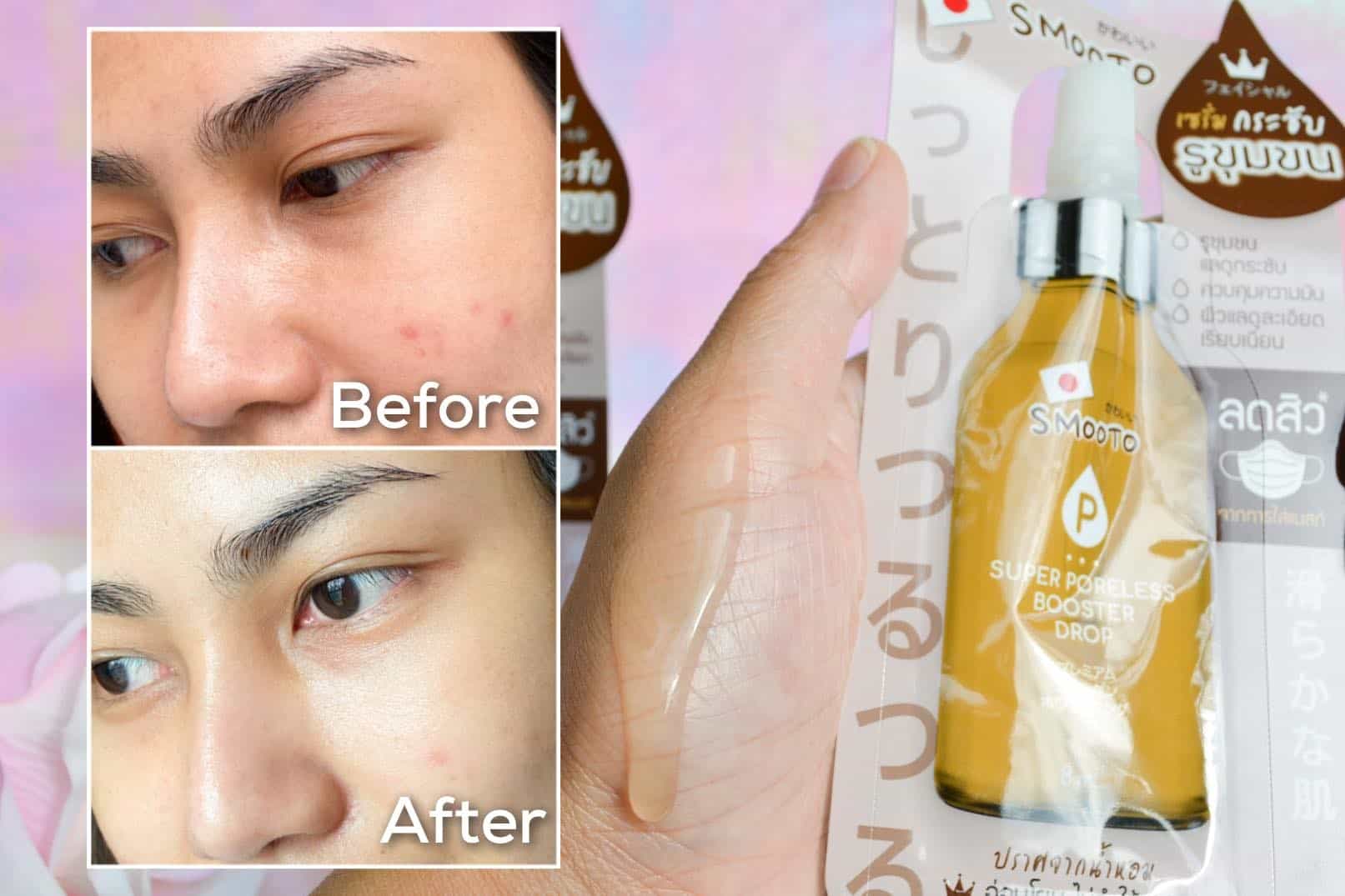 1. Smooto Super Poreless Booster Drop เป็นประจำทุกวัน ในช่วง 2-3 วันแรก เจสัมผัมถึงผิวที่กระชับขึ้น