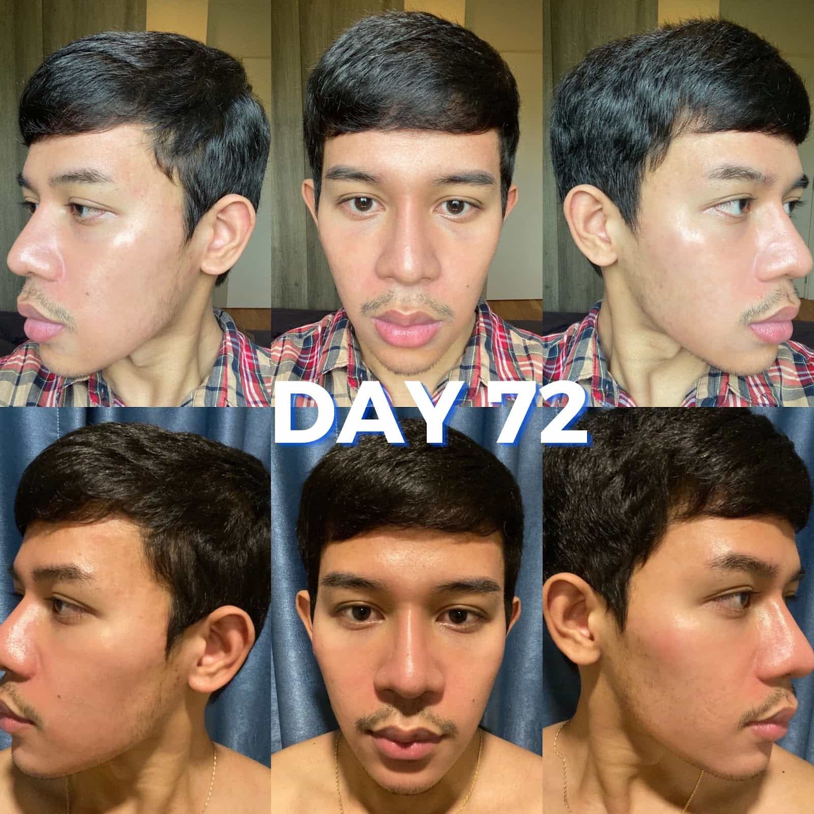 วันที่ 72 หรือเรียกว่าปัจจุบันของผมนี่แหละ โหนกแก้มมีสิวอักเสบขึ้น แต่ช่วงกรอบคางไม่มีแล้ว เหลือแต่รอยนิดๆหน่อยๆ ส่วนหน้าผากแทบจะเกลี้ยงประมาณ90%แล้วครับ