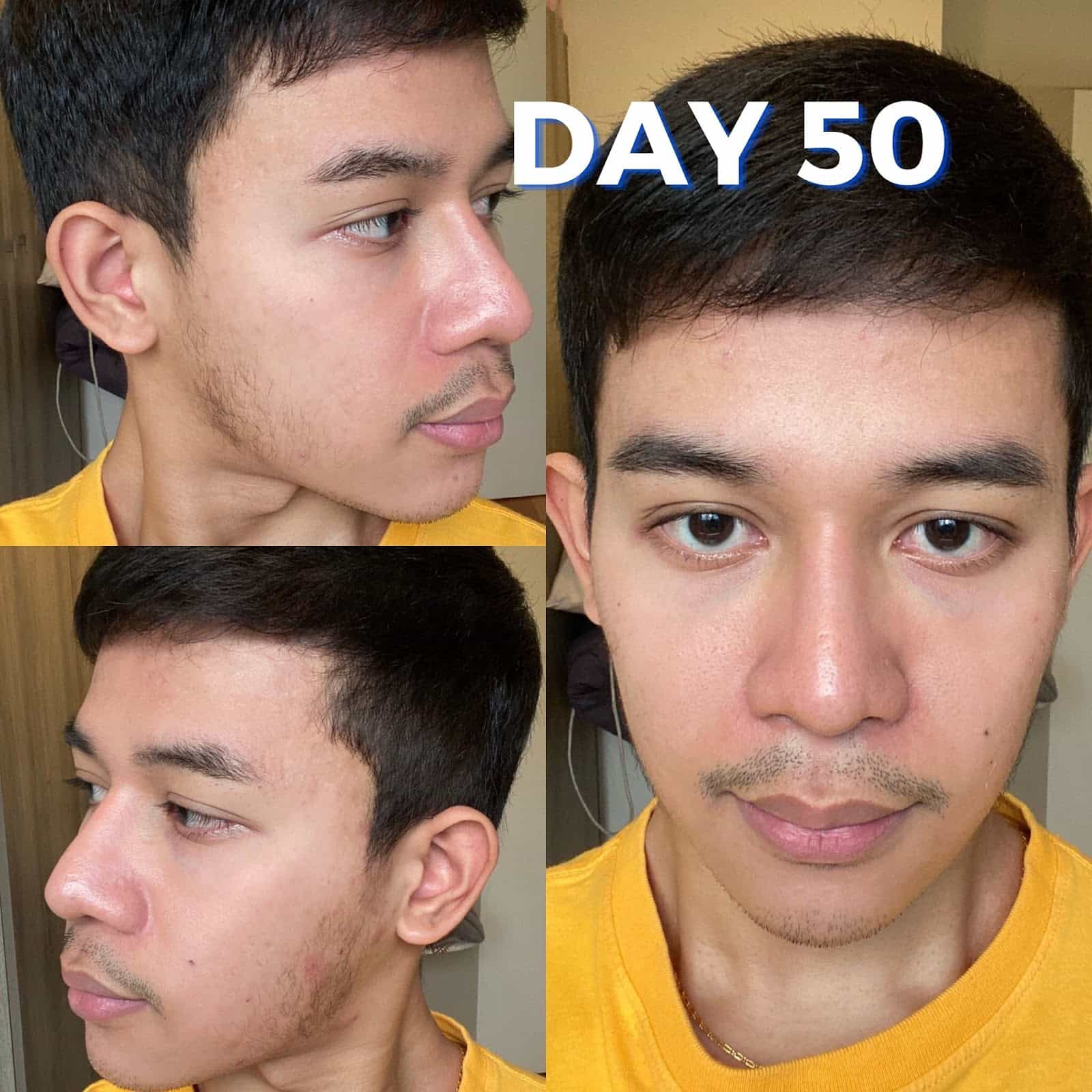 วันที่ 50 รอยยังมีอยู่ประปราย แต่โดยรวมจุดที่จางลงก็จางไปเรื่อยๆ และหน้าก็ดูสว่างขึ้น ผิวแถวโหนกแก้มละเอียดขึ้น