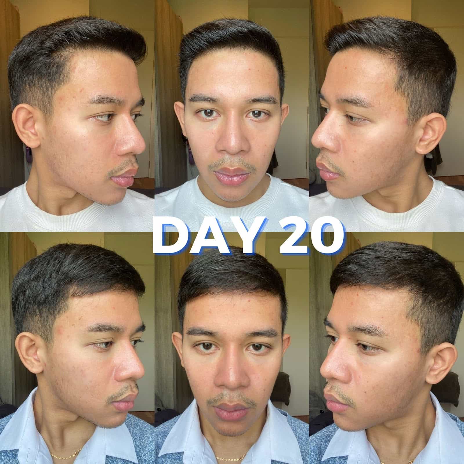 วันที่ 20 มีความเกลี้ยงขึ้นแม้จะยังไม่ครบเดือนก็ตาม แถวกรอบหน้าทั้งซ้ายขวาไปจนถึงหน้าผาก จางลงขึ้นเยอะ แต่ๆๆก็อย่าพึ่งชะล่าใจไป เพราะทางแล็บแจ้งไว้แล้วว่า ตามสเต็ปการรักษาอาการจะมีขึ้นมีลง ตามการทำงานและสภาพผิวของเราด้วย ถ้าจะให้คงที่ต้องหลัก 2 เดือนขึ้นไปนู่น