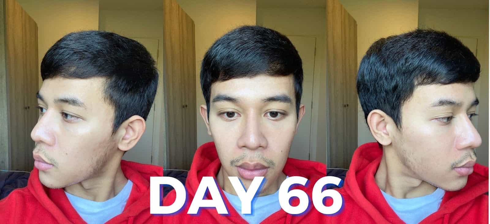 ระยะเวลา 66 วันกับผิวที่ได้รับการรักษาอย่างต่อเนื่อง ไม่มีวันไหนที่ผมขาดวินัยเรื่องทาครีมเลย ผมว่าถ้าผมไม่ต้องใส่แมสก์ทุกวัน บางทีอาการอาจจะดีขึ้นเร็วกว่านี้ก็ได้ เพราะมันไม่ต้องคอยมารักษาริ้วรอยใหม่ แค่แก้ไขรอยเก่าๆก็พอ แต่โดยรวมผลลัพธ์มันน่าทึ่งอยู่นะ ไม่รู้สิ อย่างน้อยก็ทำให้ผมไม่เสียดายเงินกับที่ลงทุนไป