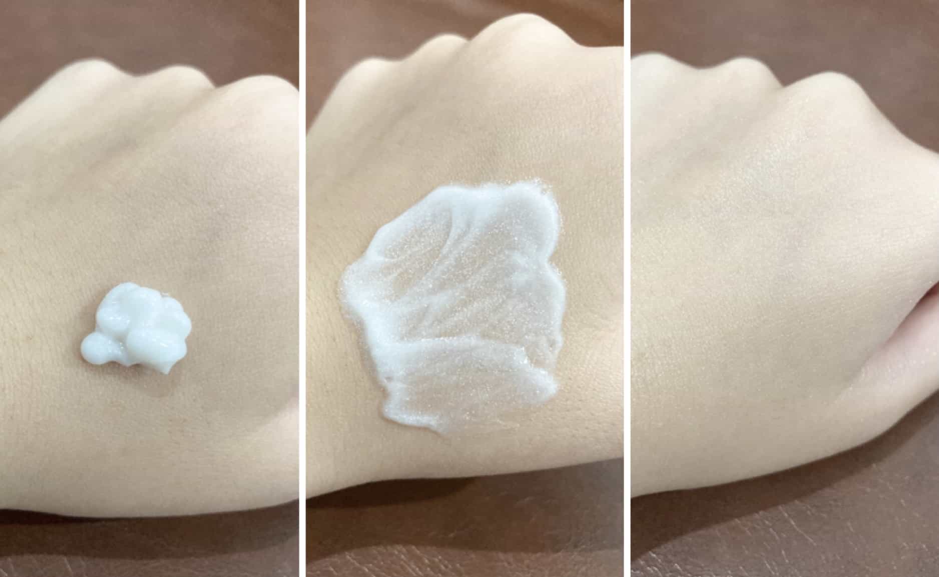 เนื้อครีมฟูๆเบาๆเหมือนมูสเลย มีความชุ่มชื้นมาก เนื้อเกลี่ยง่ายซึมไว ไม่เหนียวเหนอะหนะ หลังทาแล้วรู้สึกผิวโกลว์ๆ