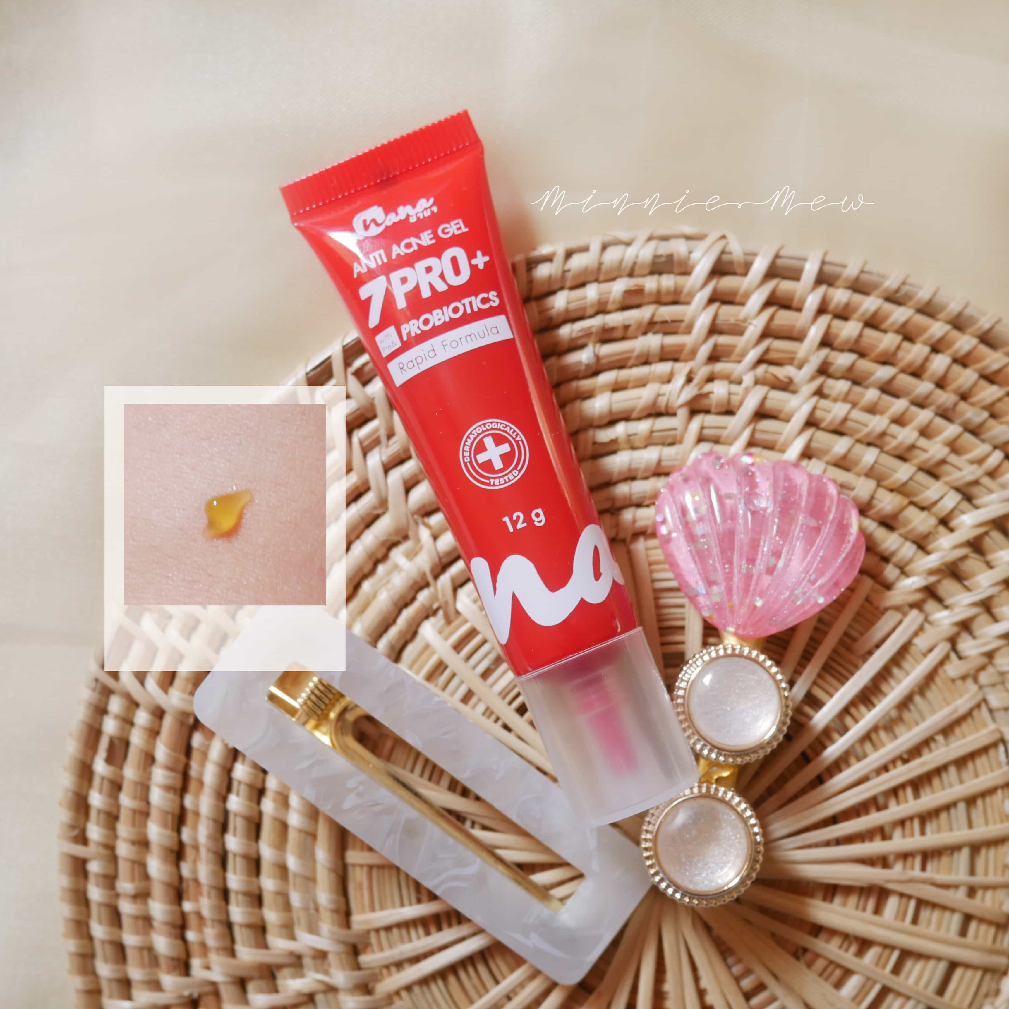 ถึงจะไม่กังวลเรื่องปัญหาสิวเหมือนเมื่อก่อน แต่ก็ใช่ว่าจะไม่มีสิวเลย Nana 7Pro Anti Acne Gel หลอดนี้ช่วยเรื่องสิวอักเสบได้ดีมาก ๆ ค่ะ เขามีส่วนผสมเป็นสารสกัดจากธรรมชาติถึง 7 ชนิด เช่น ใบบัวบก, ว่านหางจระเข้, คาโมมายด์, ไพล, ทองพันชั่ง, รางจืด และ Allantion เป็นเจลแต้มสิวสูตรเร่งด่วน จัดการสิวอักเสบได้อย่างอยู่หมัด ทำให้สิวยุบเร็วโดยไม่ทิ้งรอยไว้ ส่วนตัวมิ้วว่าเขายังช่วยลดการกระคายเคืองและปลอบประโลมผิวได้ดีมาก ที่สำคัญคืออ่อนโยน ทาตรงสิวอักเสบ ไม่มีปฏิกิริยาแสบ ๆ แต่อย่างใด แต่วันต่อมาคือสิวเริ่มแห้งและยุบลง ตรงนี้แหละที่มันดีมาก ๆ !