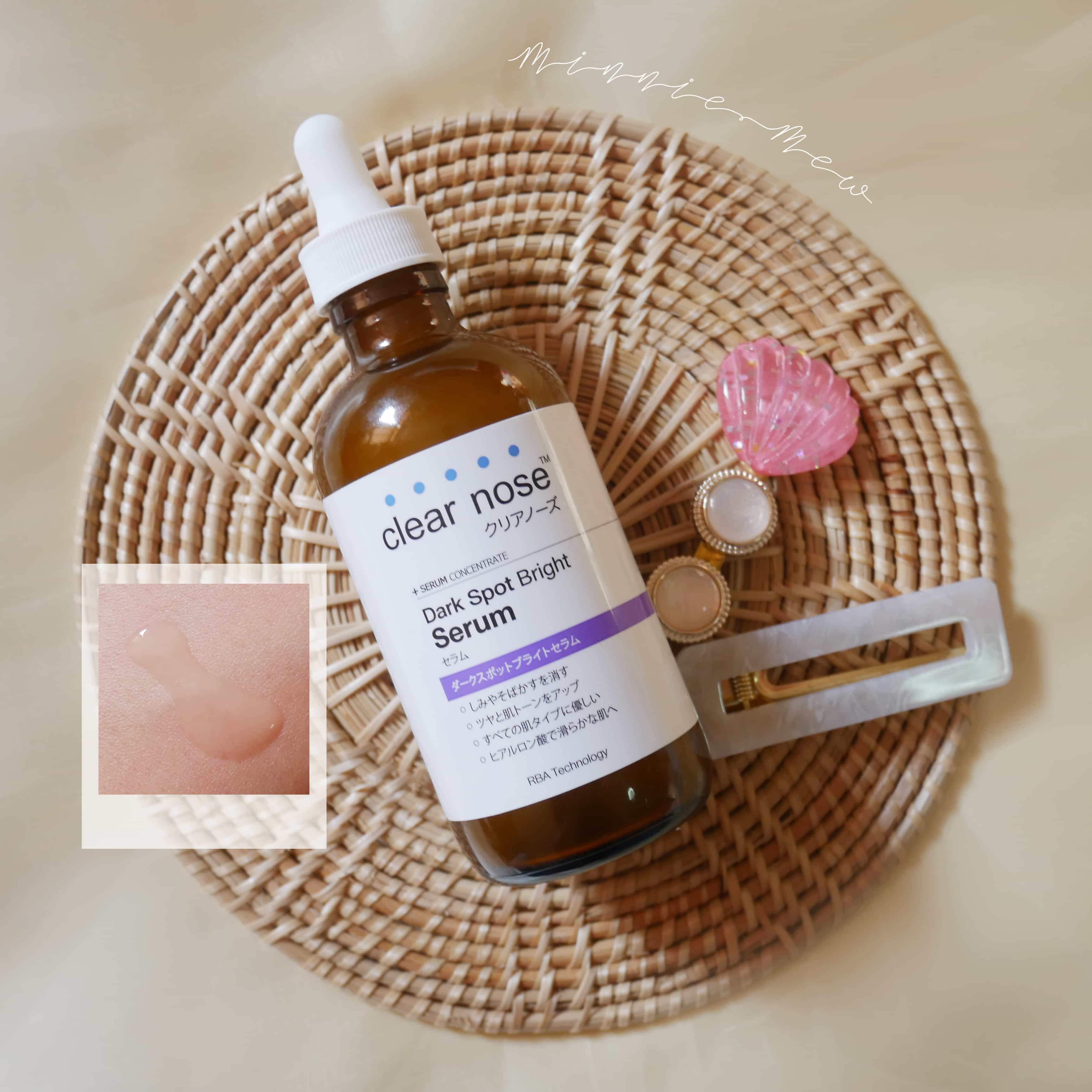 เจ้าตัวนี้เป็นเซรั่มที่เน้นเรื่องการลดเลือนจุดด่างดำ Clear Nose Dark Spot Serum ซึ่งมีทั้งสารสกัดจากดอกแซนด์ลิลลี่, วิตามินซี, คอลลาเจน และไฮยาลูรอน มีคุณสมบัติลดเลือนรอยสิว จุดด่างดำ ปรับผิวให้ดูกระจ่างใส และรักษาความชุ่มชื้นอิ่มน้ำ ให้ผิวแลดูโกลว สีผิวสม่ำเสมอขึ้น ส่วนตัวมิ้วชอบกลิ่นที่หอมละมุน เนื้อบางเบาและซึมเข้าสู่ผิวได้ดี เรื่องการลดเลือนจุดด่างดำไม่เห็นผลมากนัก แต่ให้คะแนนตรงเรื่องความชุ่มชื้น อิ่มเด้งฟู เหมือนว่าผิวได้รับการบำรุงอย่างเต็มที่จริง ๆ ค่ะ