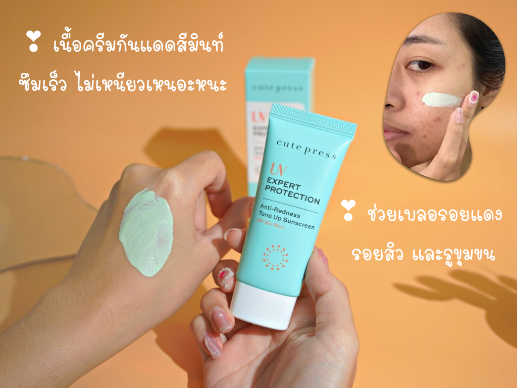 น้องเขาเป็นกันแดดเนื้อโทนอัพสีมินท์ที่จะช่วยเบลอรอยแดง รอยสิว