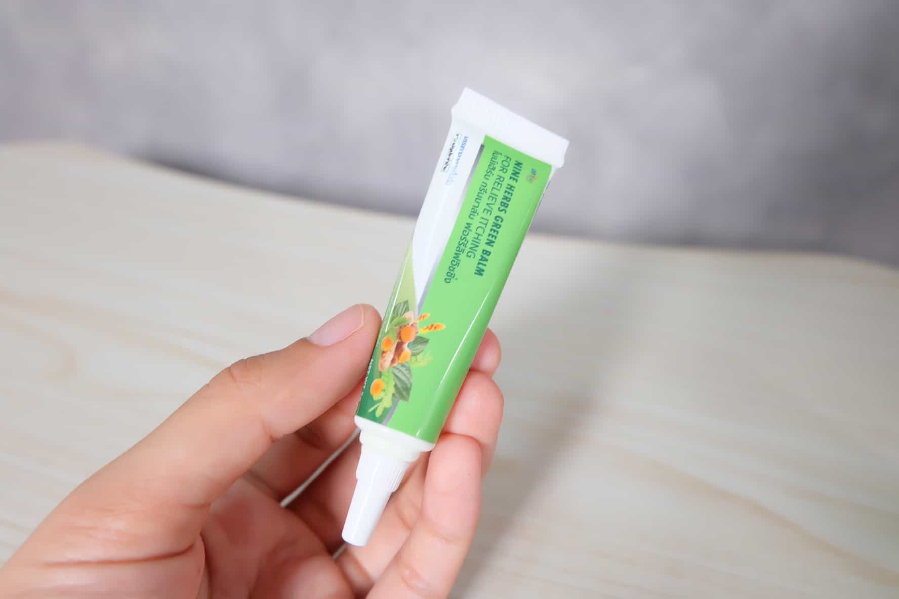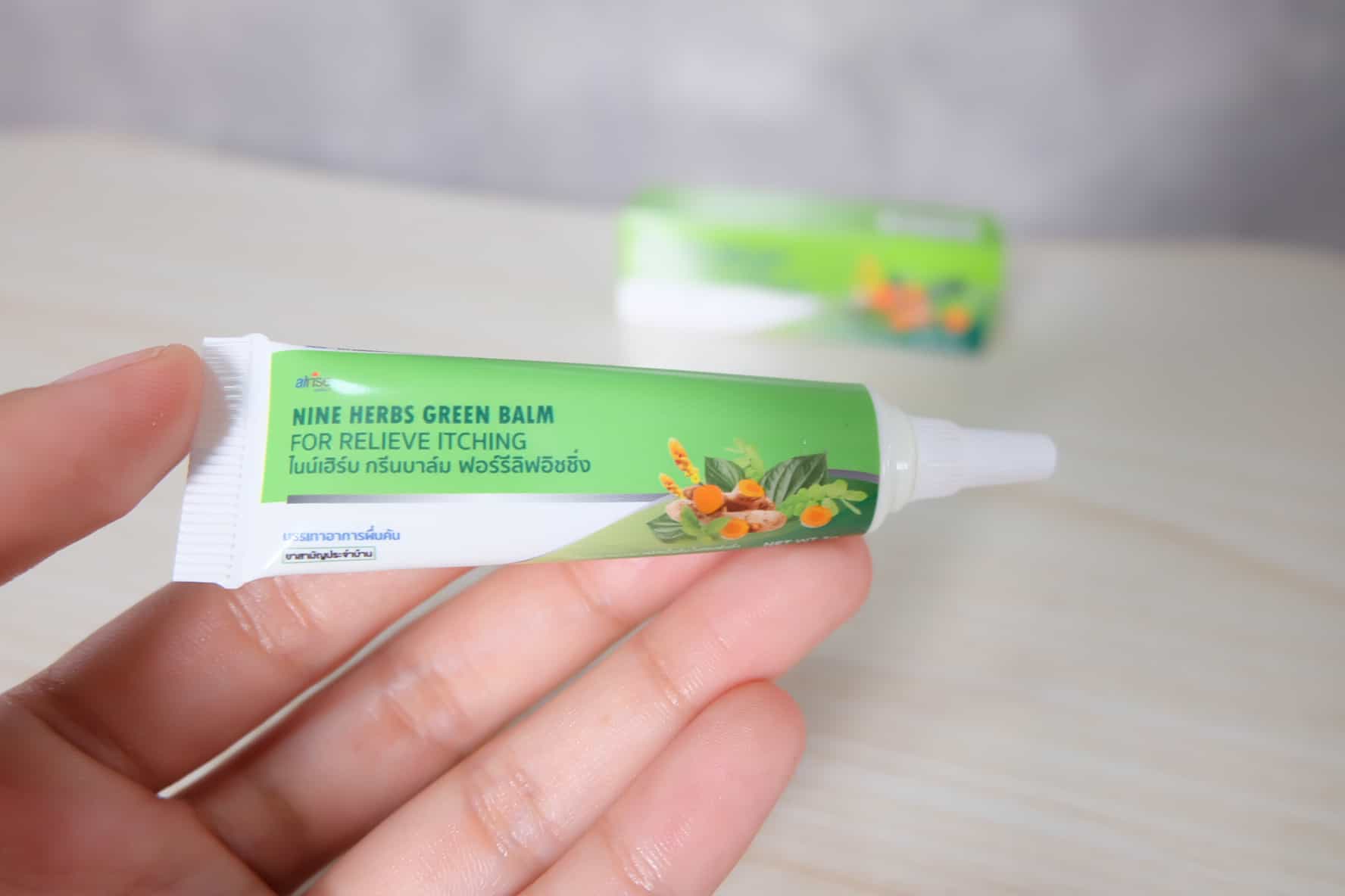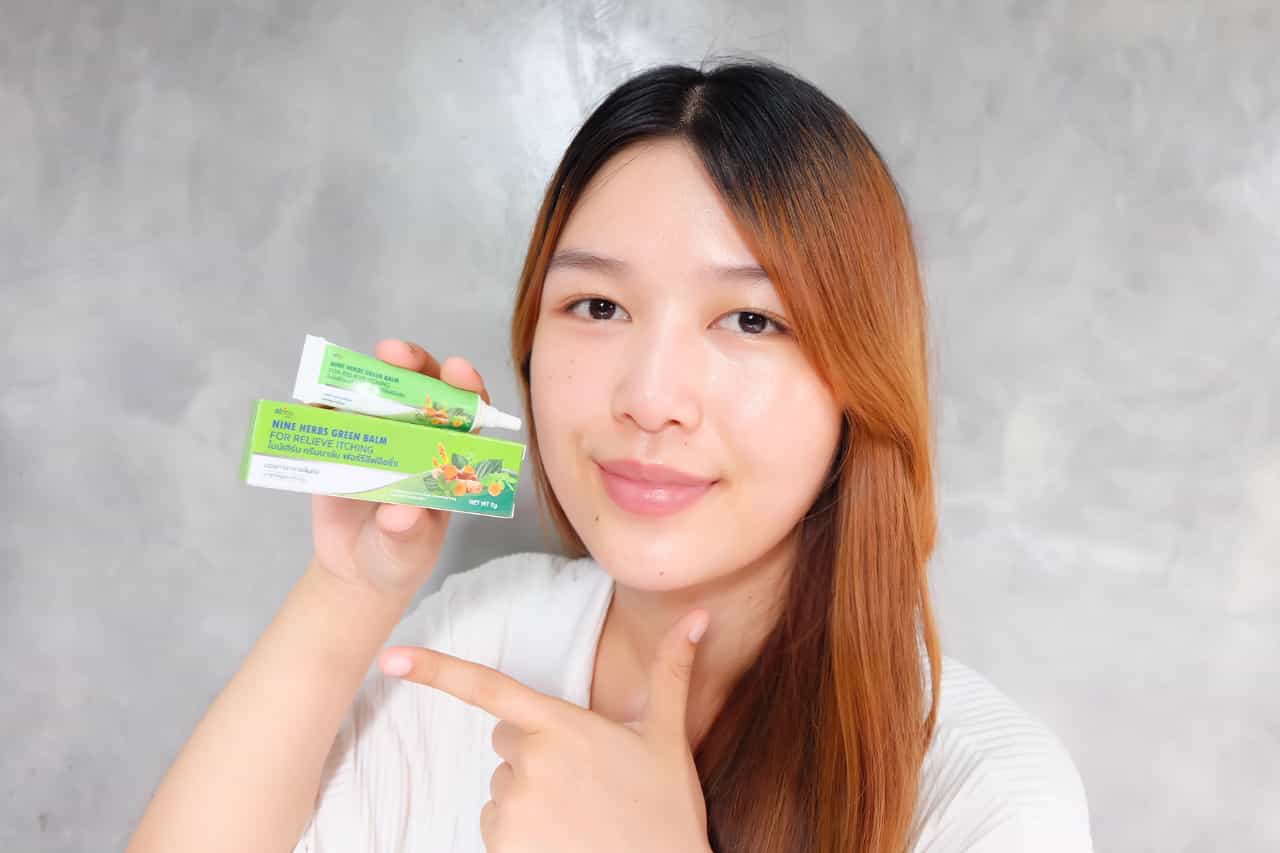 NINE HERBS GREEN BALM FOR RELIEVE ITCHING ( ไนเฮิร์บ กรีนบาร์ม ฟอร์รีลิฟอิชชิ่ง ) เป็นผลิตภัณฑ์ที่ช่วยในเรื่องบรรเทาอาการผื่นคัน มดกัด ยุงกัด แมลงกัดต่อย ผื่นคัน ในรูปแบบเจลสีเขียว ใช้ง่าย พกพาสะดวก สารสกัดจากสมุนไพรไทย ไม่มีส่วนผสมของสเตียรอยด์ เด็กอายุ 3 ปีขึ้นไป สามารถใช้ได้