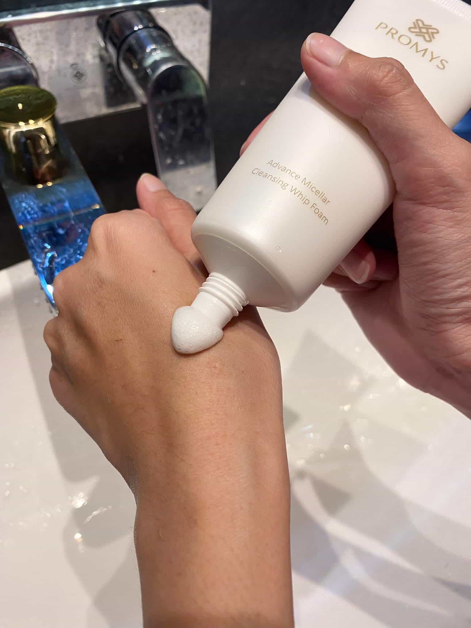 ต่อมาจะเป็น Promys Advance Micellar Cleansing Whip Foam เป็นวิปโฟม ไมเซล่าที่คนแพ้ง่ายสามารถใช้ได้ เพราะปราศจากพาราเบน และช่วยทำความสะอาดผิวหน้า/ล้างเครื่องสำอางได้อย่างหมดจด ทำให้ผิวหน้าชุ่มชื้นขึ้น มีส่วนสำคัญที่จะช่วยฟื้นฟูผิวให้กลับมาอ่อนโยน กระจ่างใส ด้วยส่วนประกอบหลากหลายชนิดที่ช่วยให้ผิวหน้าสุขภาพดียิ่งขึ้น เนื้อวิปคือนุ่มยิ่งกว่าวิปครีมจริงๆซะอีก