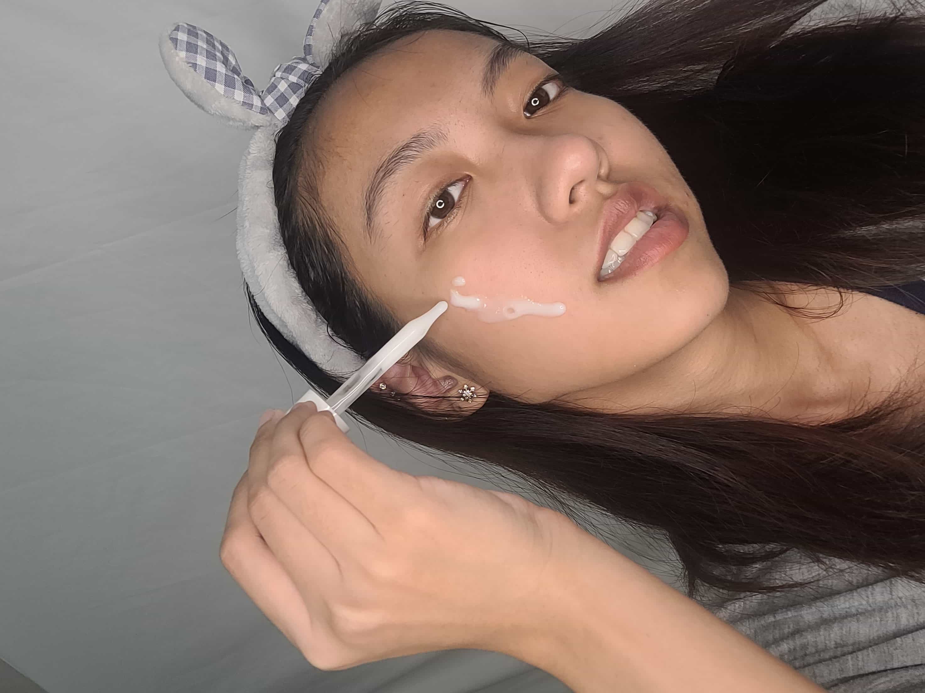 หากใครต้องเพิ่มความชุ่มชื้นอีก สามารถหยดเซรั่วเพิ่มขณะที่กำลังมาร์กหน้าได้