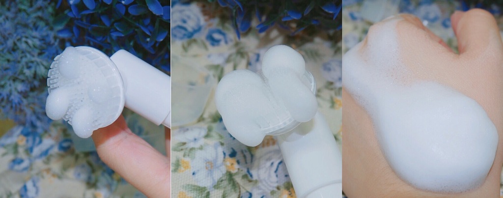 จากการทดลองใช้สำหรับการกดฟองๆออกมาใช้ ก็จะพบว่าฟองนุ่มนิ่มมมม ฟู ละเอียดดีมากใช้ครั้งละ 1-2 ปั๊ม จะสามารถล้างหน้าได้โดยที่มือไม่โดนหน้าเลย ฟองเยอะเลยยยส่วนหัวแปรง แม้ว่าจะนิ่มมากแล้ว สำหรับคนที่ผิวเซนซิทีฟก็ระวังในการขัดนิดนึงเพราะรู้สึกเองว่า ลองขัดแล้วค่อนข้างจะมีอาการระคายเคืองนิดๆและเรียกความสิวได้เช่นกัน