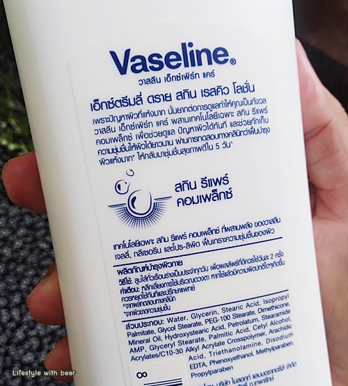 ตัวแรกเป็นโลชั่นทาผิวจาก “Vaseline” เป็นรุ่น วาสลีน เอ็กซ์เพิร์ด แคร์ เอ็กซ์ตรีมลี่ดราย สกิน เรสคิว ซึ่งรุ่นนี้จะเป็นโลชั่นที่เหมาะกับคนผิวแห้งมากเป็นพิเศษ มีเทคโนโลยีสกินรีแพร์ คอมเพล็กซ์ ที่ช่วยดูแลปัญหาผิวได้ทันที กักเก็บความชุ่มชื้นได้ยาวนาน เหมาะกับคนที่มีปัญหาผิวแห้งมากต้องการดูแลเป็นพิเศษ เค้าเคลมมาเลยนะว่า สามารถช่วยฟื้นฟูผิวให้กลับมาชุ่มชื้นได้ภายใน 5 วัน