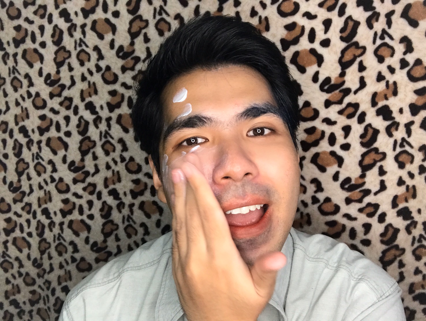 "ทาให้ทั่วผิวหน้าไปเลย แต่น้องควอนตั้มขอเริ่มจากด้านซ้ายก่อนจ้า"