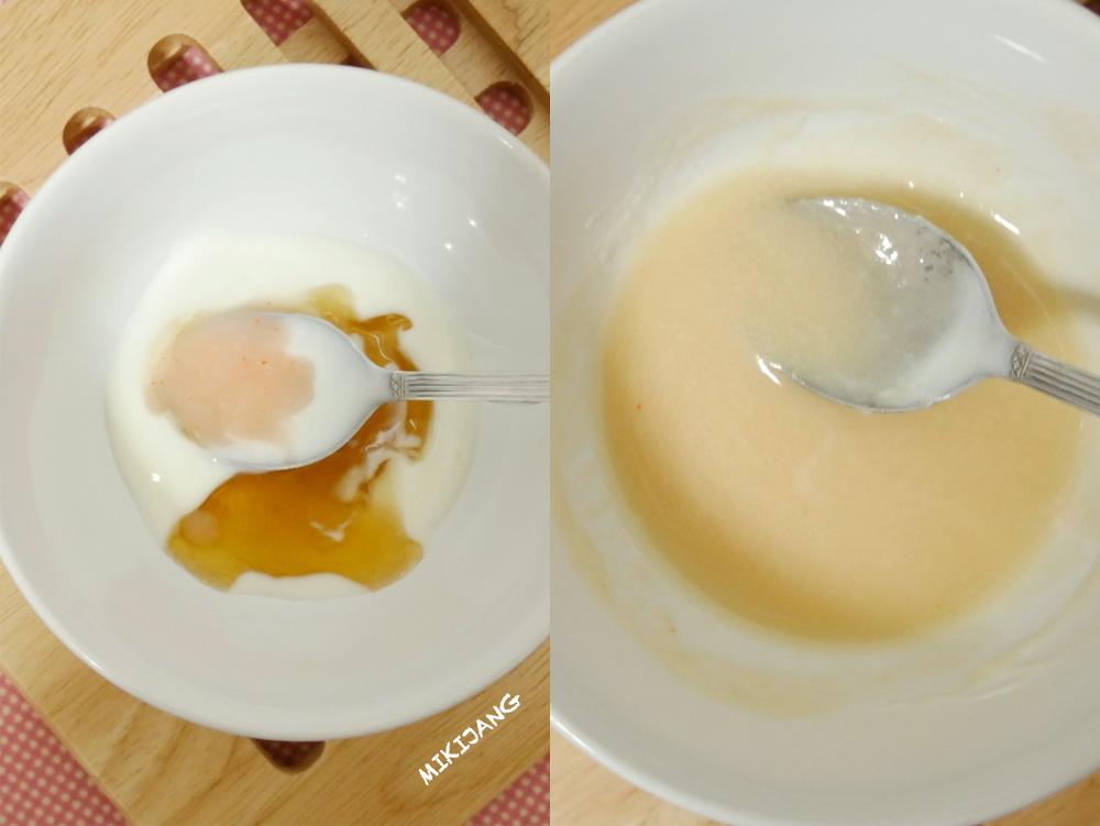 สูตรนี้เป็นสูตรที่เราคิดและลองกับตัวเอง จริง ๆ จะเรียกว่าเอาทุกอย่างจาก 2 สูตรที่แล้วมายำรวมกันก็ได้ เพราะจริง ๆ แล้วอยากรู้ว่าเวลาเอามาพอกกับผิวแล้วจะเป็นยังไง ตรงนี้เรากำหนดอัตราส่วนเองได้เลยค่ะ