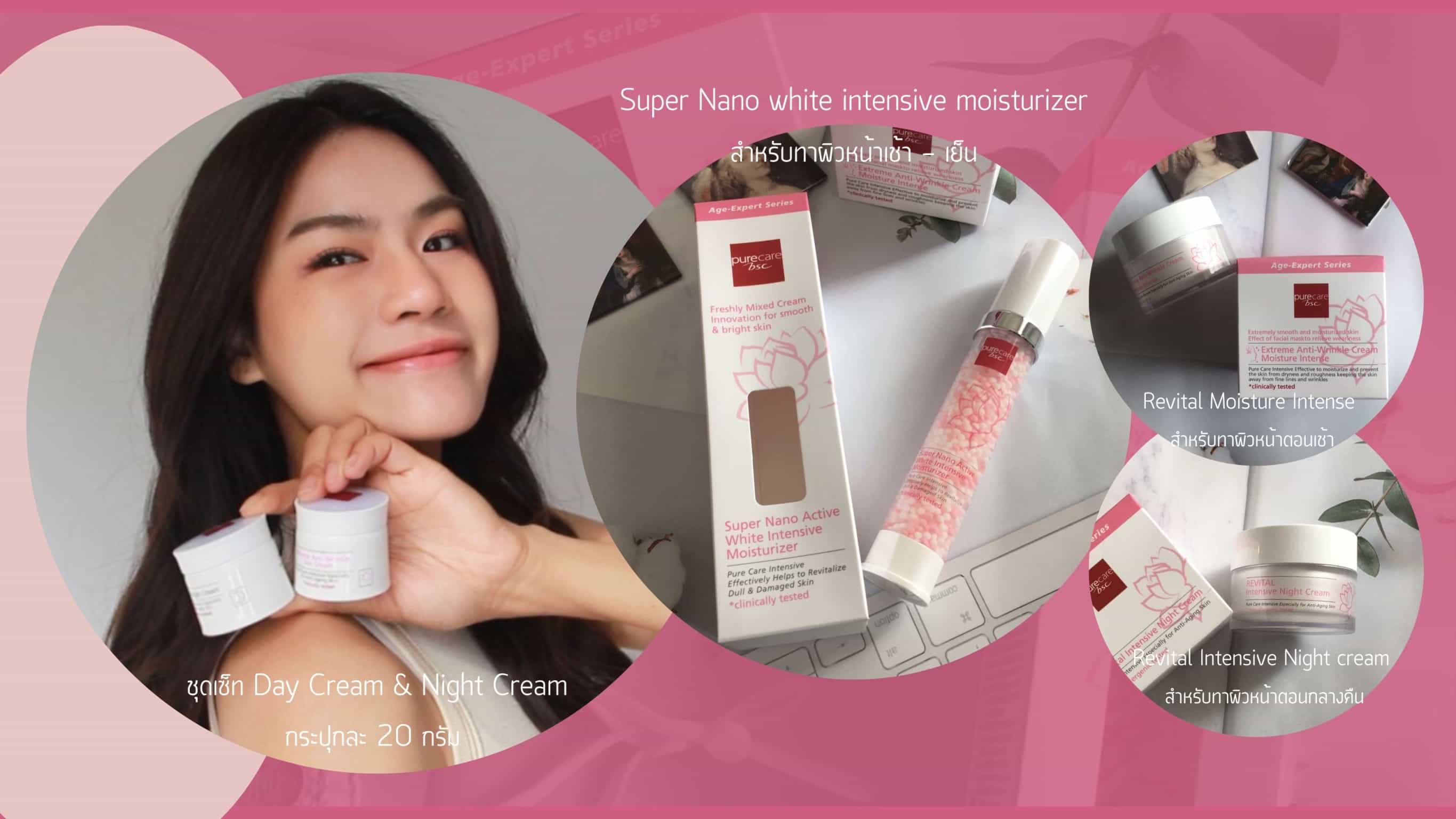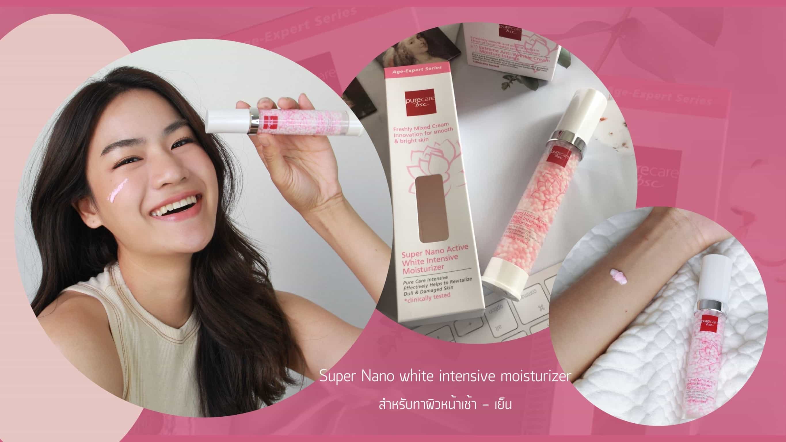 Item แรก Super Nano Active White Intensive Moisturizer ขนาด 30 ml. จะเป็นขวดปั้มทรงสูงปริมาณเยอะมากๆๆ ใช้กันคุ้มๆๆไปเลยค่ะ เจ้าตัวนี้เป็นครีมบำรุงผิวสำหรับตอนเช้า และตอนกลางคืน ใช้ก่อนลงครีมบำรุงตอนเช้าและตอนกลางคืนได้เลย เพิ่มการบำรุงเป็นดับเบิ้ลไปเลยค่ะ เจ้าตัวนี้จะเป็นเม็ดแคปซูลเล็กๆสีขาวและสีชมพู เวลากดมาใช้ก็จะผสมเนื้อครีมออกมาให้เราใช้คะเขาเรียกการผสมสดค่ะ เพราะส่วนผสมทั้งหมดจะผสมสดใหม่ในตอนที่เรากดออกมาใช้ค่ะ กลิ่นหอมอ่อนๆ ไม่เหนียวเหนอะหนะ แห้งไวค่ะ